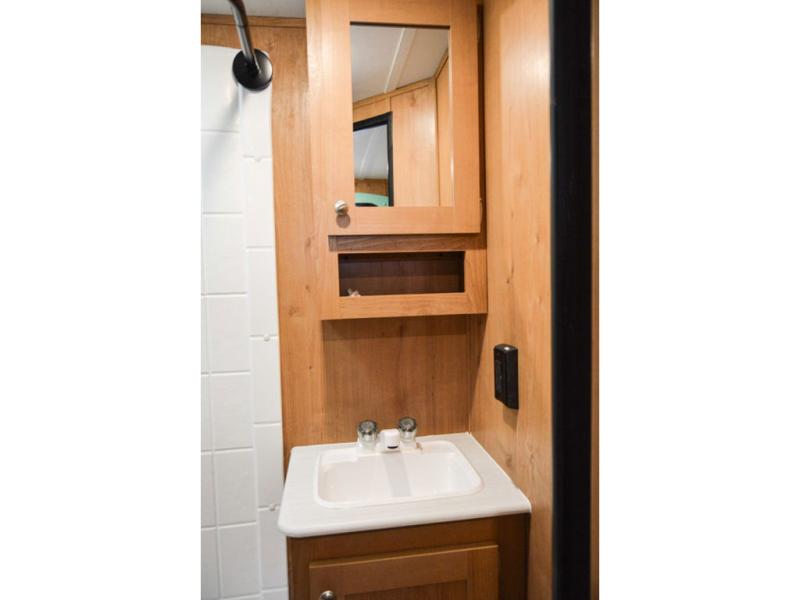 Start camping the best way with this travel trailer! As you enter the unit, you will notice the rear corner bathroom which has a radius shower to freshen up in each morning. Eat meals, play games, and even sleep on the booth dinette with an entertainment center next to it for your enjoyment. The fully equipped kitchen not only has a refrigerator, but also a four burner cooktop so you can cook more things at once. When you're ready to get a good night's rest, head to the front 60" x 76" queen bed with overhead cabinets to store your books or other necessities!