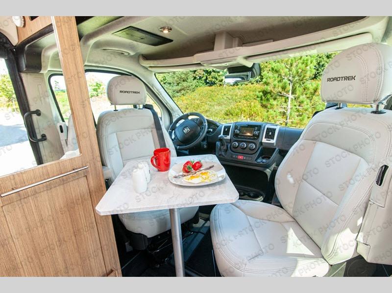 The Roadtrek Class B gas motorhomes are built upon the stylish Ram ProMaster chassis with a 3.6L V6 gas engine to power your trips near and far. The rearview backup camera, the stability program, and the Uconnect 3 with navigation and a 5" touchscreen will make the drive just as sweet as the destination. Each model includes a 12V refrigerator, a two-burner recessed propane stove with a flush cover and built-in igniter, and ample storage space for all your belongings. The instant hot water system with 36,000 BTU will provide hot water when you need it, and the 16,000 BTU propane automatic furnace will keep you warm if you travel year around.