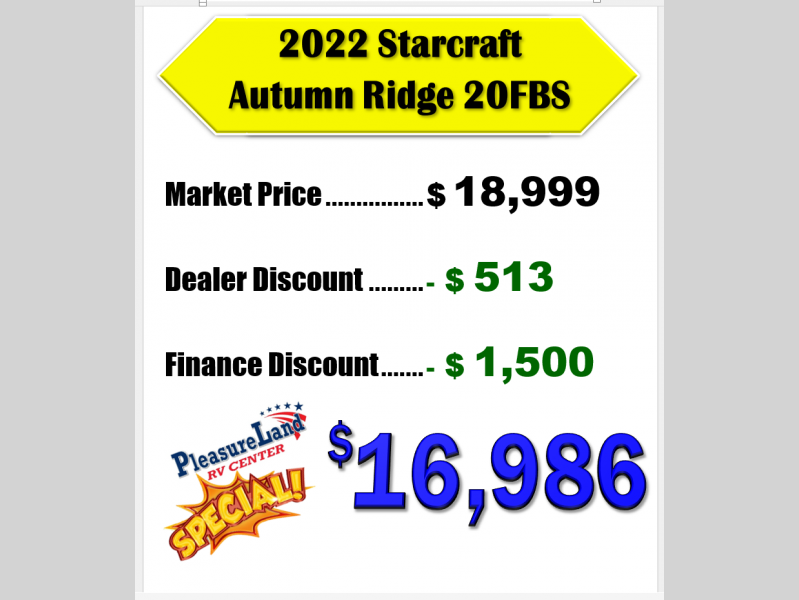 Used 2022 Starcraft Autumn Ridge 20FBS Travel Trailer
