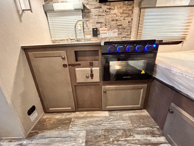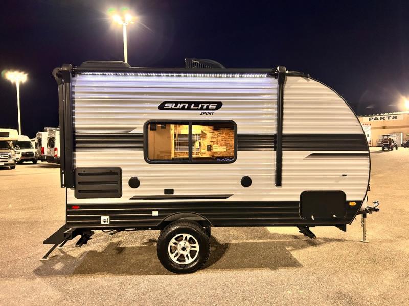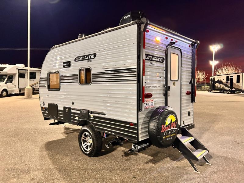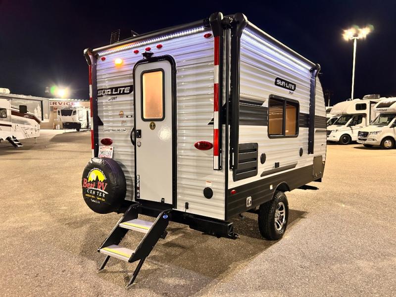 You can trust the build and enjoy your experience with any one of these Sunset Park RV Sun-Lite Classic travel trailers! Their aerodynamic profile is not only easy to haul, but also saves on fuel. They are built to withstand years of traveling even though they are lightweight with a diamond plate rock guard, a one piece PVC roof membrane, EZ lube electric brake axles, and radius tinted safety glass windows with nightshades for added privacy. The mandatory Comfort package includes a Bluetooth radio with inside and outside speakers, a quick connect gas line, a microwave, and an outside shower to help keep the dirt outdoors where it belongs.