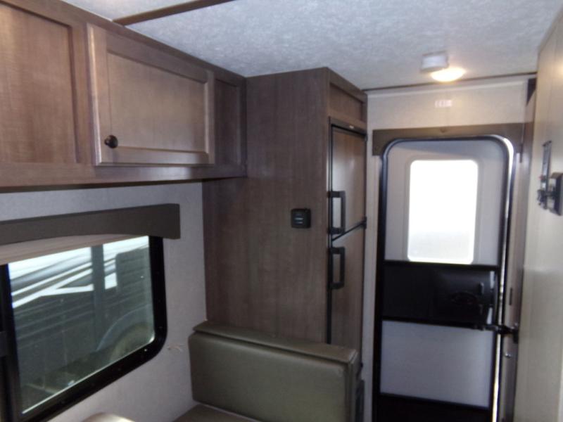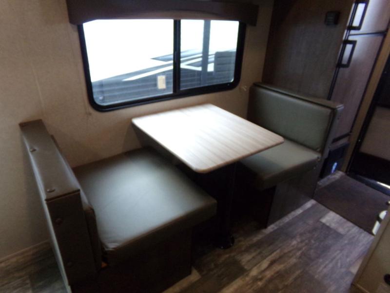 Pack your bags and load up this travel trailer for a great camping trip! You will have everything you need to keep your belly full with the two burner cooktop, your hair clean with a tub inside the full bathroom which also has a power vent fan, and your body well rested after sleeping on the front 60" x 74" queen bed. You can even play card games at the booth dinette or transform it into an extra sleeping space. There is also an outside shower to rinse the mud off your feet before entering inside!