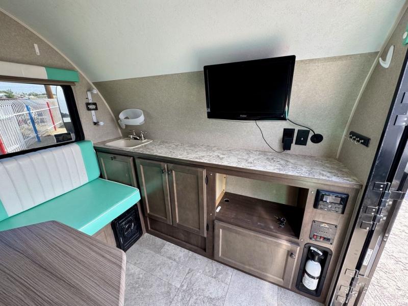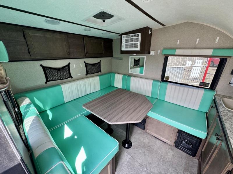 It will be amazingly easy to get to the campsite with this Sunray travel trailer! You can use the dinette during the day as a dining location and at night as a sleeping space, and the 40" x 78" bunk above the dinette will serve as an additional sleep space for another tired traveler. Make your world-famous pancakes on the two-burner stove top outside, and spend some time washing dishes afterwards in the indoor and outdoor sink. Also on the interior, you will find a private toilet which will be ultra convenient when you wake up in the middle of the night and need to go to the bathroom. You can add the optional Sports Package featuring 14" tires instead of the off-road tires, color matching rims with Moon Caps, and Retro Decor and Diner-Style Countertops.
