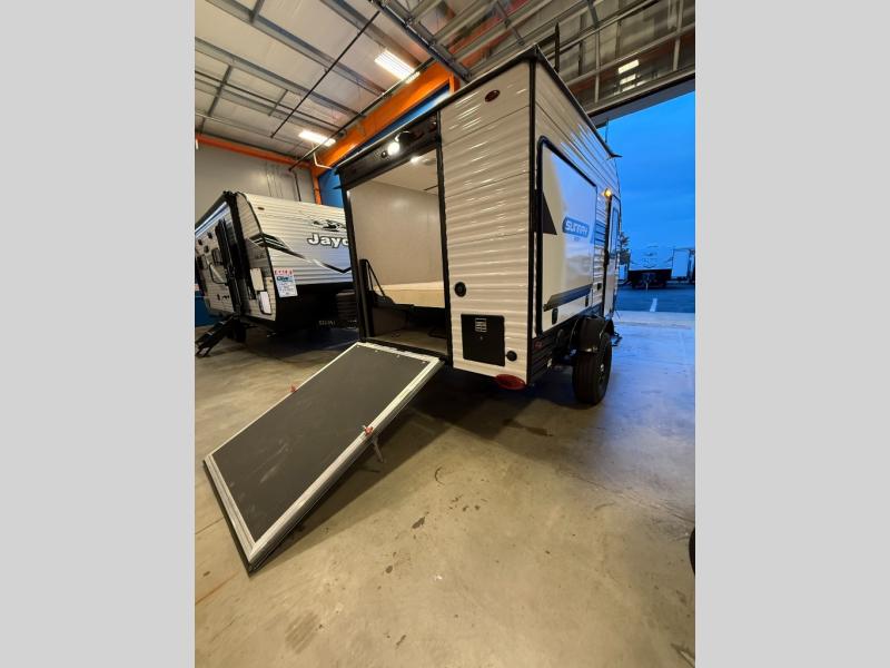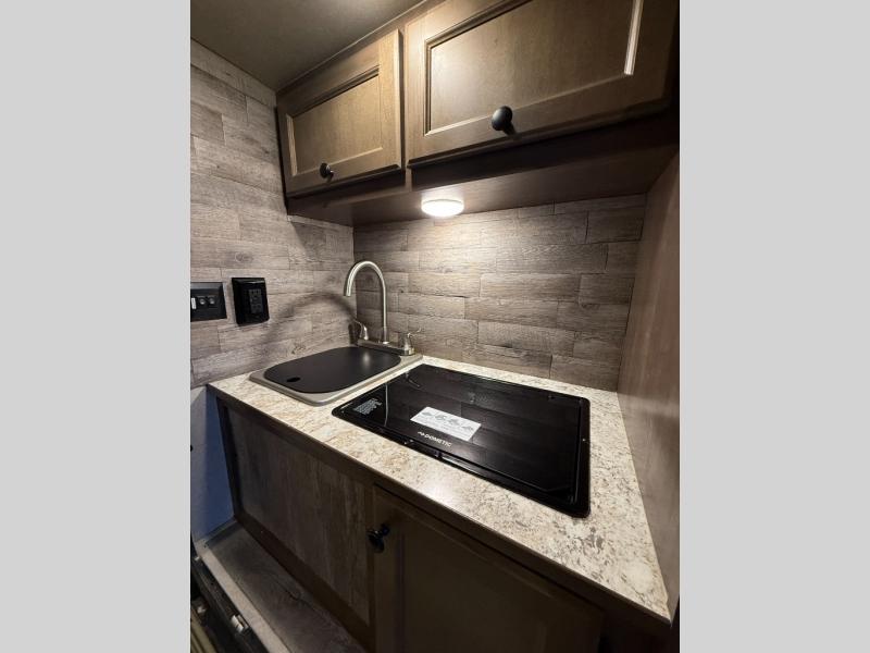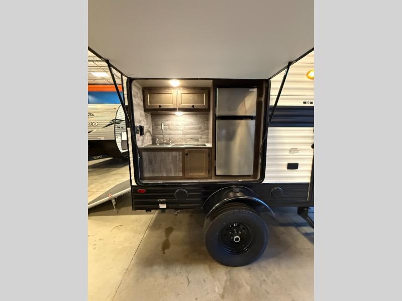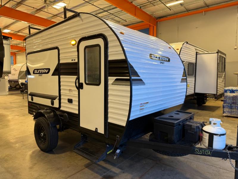 The Sunray travel trailer from Sunset Park RV is an investment that you'll be able to enjoy for many years to come! These compact trailers are effortless to tow, so you won't need fancy equipment to have fun at the campsite. The Sunray is built upon a powder-coated steel chassis, and it has a diamond plate rock guard to keep the front end protected from debris. You'll find radial tires, a spare tire with carrier, and .024" aluminum siding on each model. You'll be able to remain comfortable when staying indoors thanks to the air conditioner and furnace, and each model has been prepped for a backup camera in order to make your maneuvering a little bit easier. Another way that your camping experience will be elevated is with the Confidence Package which comes with a 6” lift with off-road tires, black steel rims, and a roof rack.