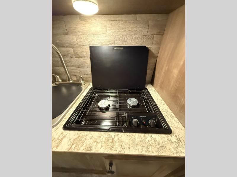 Just enjoy the journey ahead of you and let this Sunray travel trailer take you to majestic views and breathtaking landscapes! Since there is a 54" x 74" bed, you won't have to blow up an air mattress to sleep at night. Make your world-famous pancakes on the two-burner stove top outside, and spend some time washing dishes afterwards in the indoor and outdoor sink. Also on the interior, you will find a private toilet which will be ultra convenient when you wake up in the middle of the night and need to go to the bathroom.