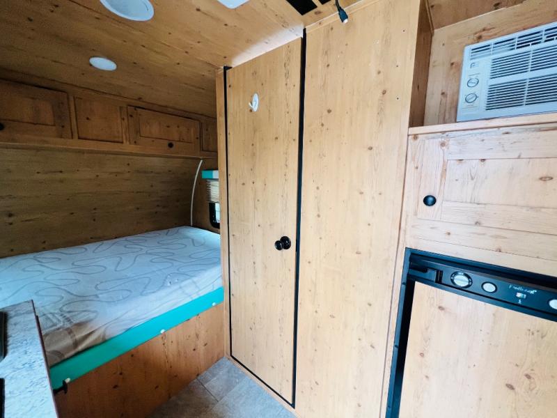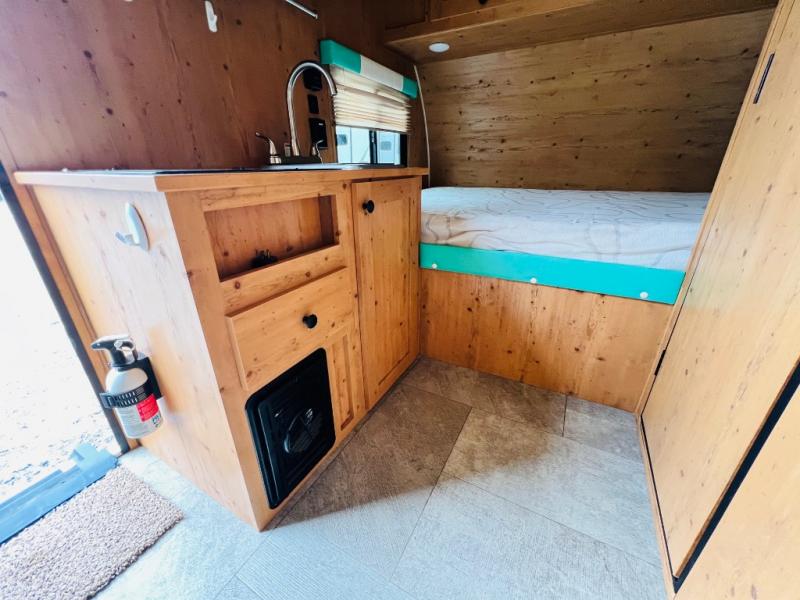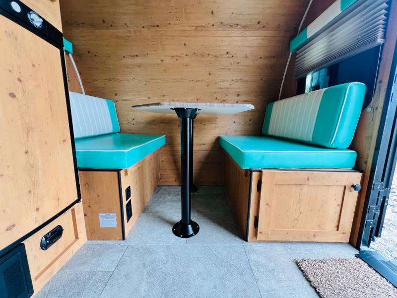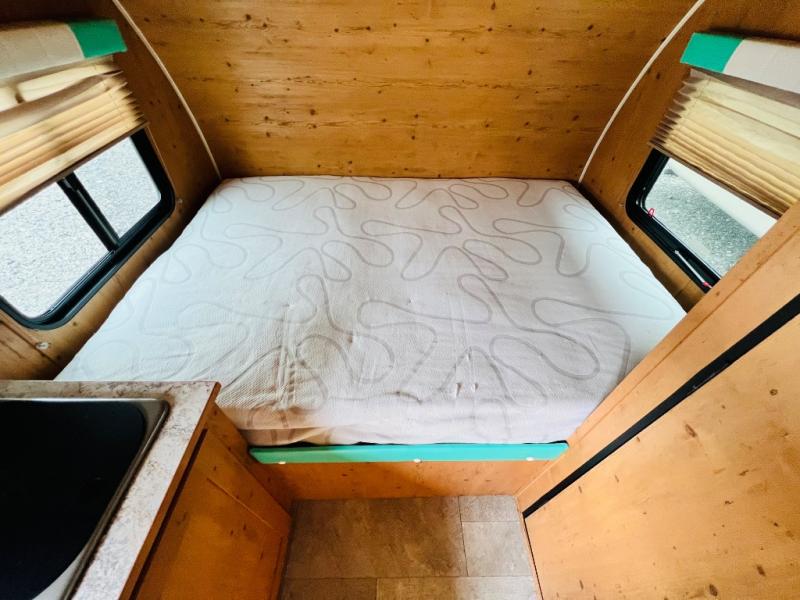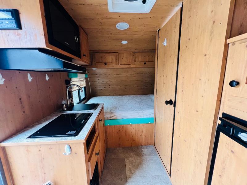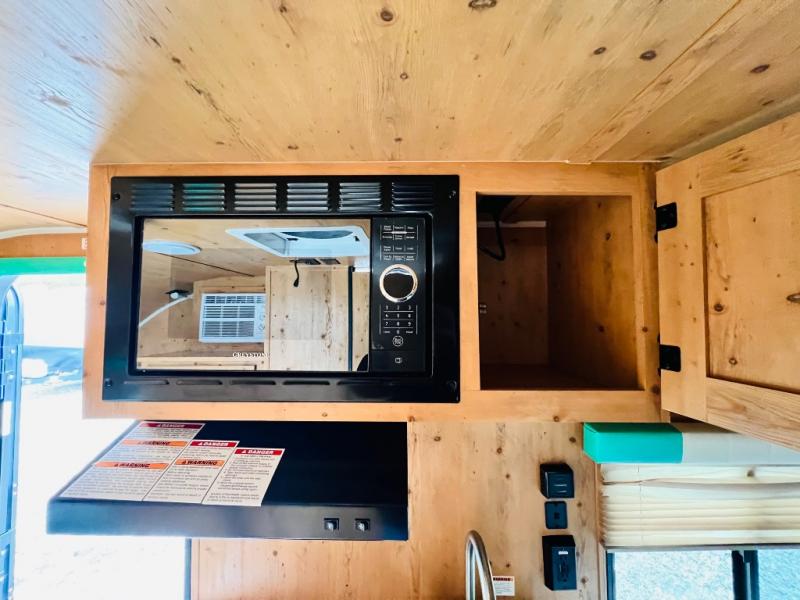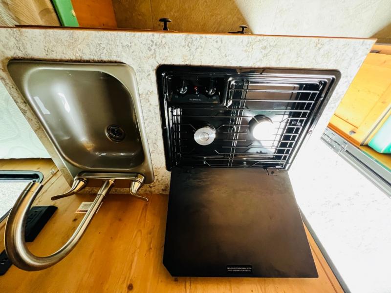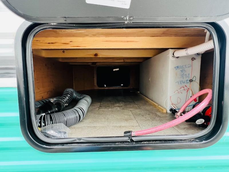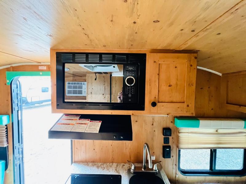 This Sunray travel trailer is the largest and most accommodating because it comes with a wet bath so that you can even take a shower in your trailer! There is a small kitchen on the interior that comes with a two-burner stove top, a refrigerator, and a microwave so that you can cook dinner without having to start a fire, and since it is indoors, you will be able to keep the bugs away while you prepare something delicious to eat. If you need to rinse off some gear, the outside shower will be especially useful, and if you need to charge your devices, use the USB ports. You will also find a Wineguard HDTV antenna on this model. Add the available Classic option for 14" tires instead of the off-road version, color matching rims with Moon Caps, and Retro decor and Diner-Style countertops.
