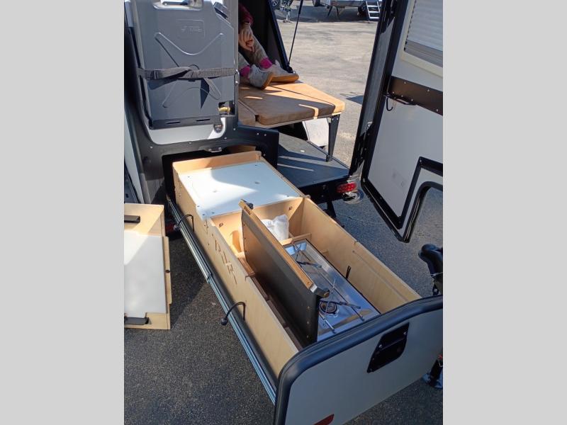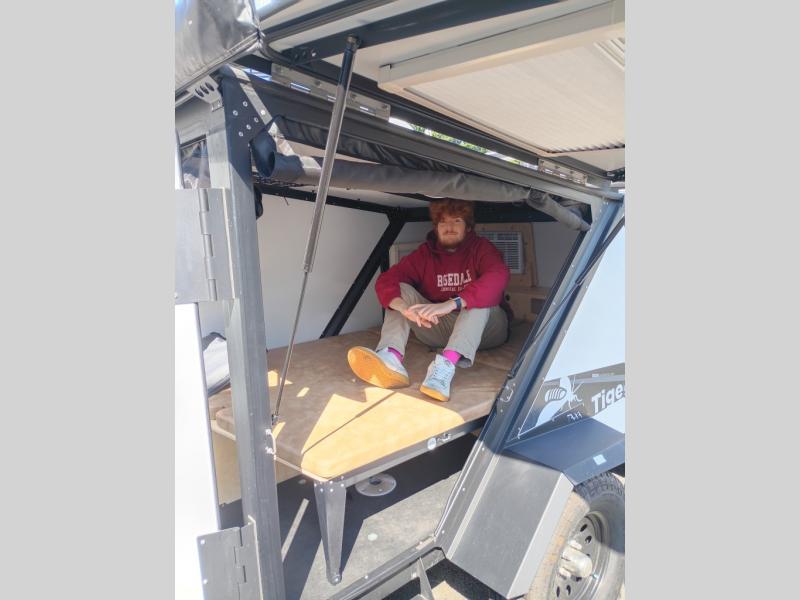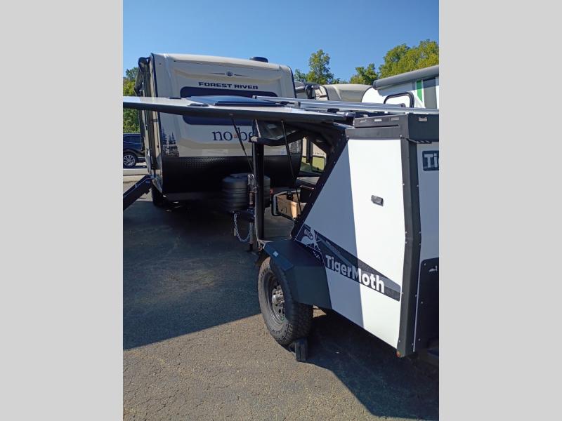 You will enjoy seeking adventure as much as the destination with this lightweight, easy-to-tow Tiger Moth travel trailer that can fit in most standard garages thanks to its 12' 10" length. There is sleeping space for two and an optional rooftop tent that can sleep two to three more adults. With the open design, you will have good ventilation and beautiful views wherever you decide to set up camp. The built-in electrical system and and pre-wired solar input allow you to stay off-grid up to seven days if you wish. And, the large side hatch gives you easy access to your gear.