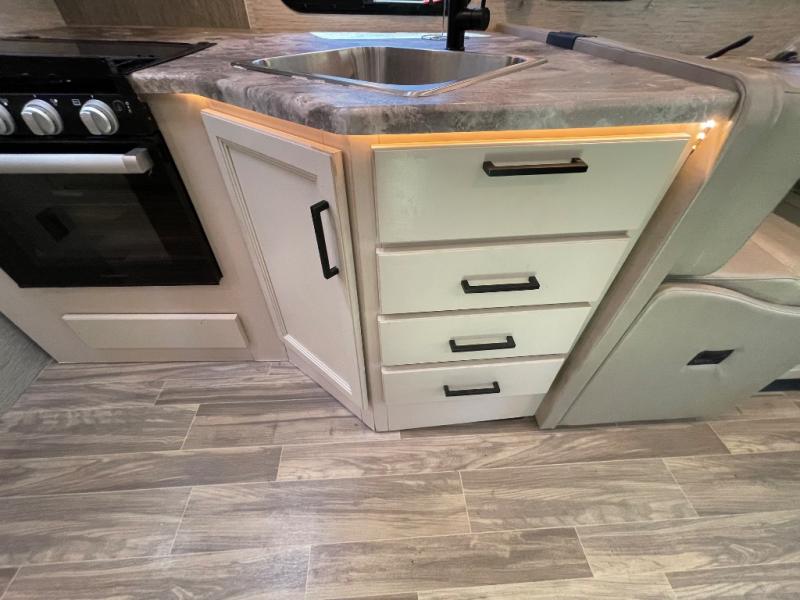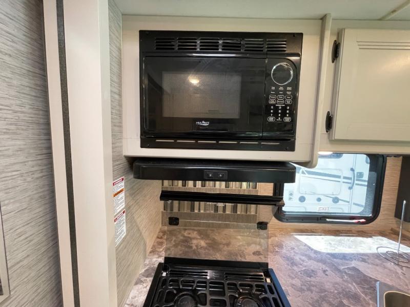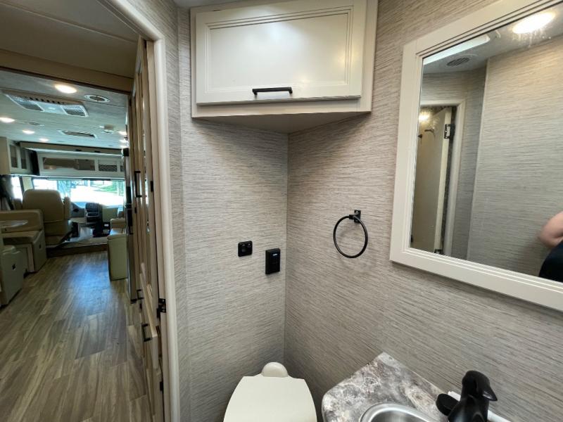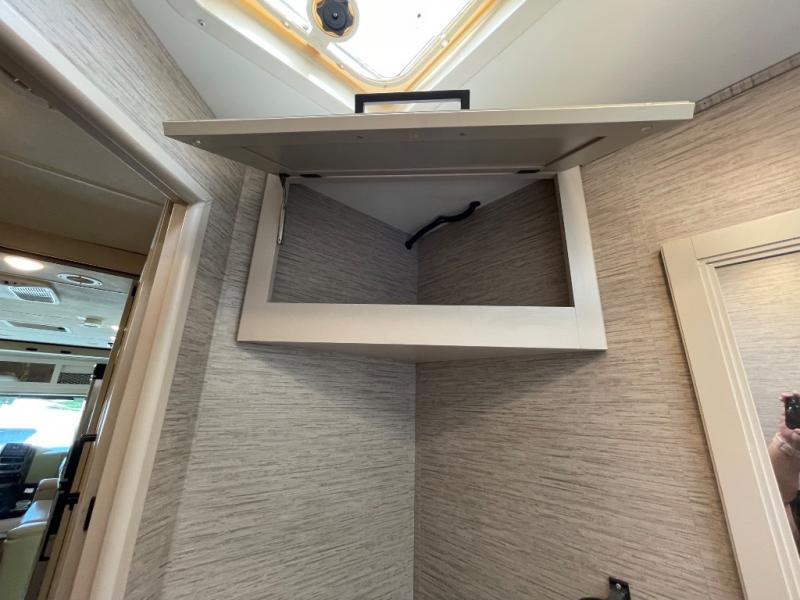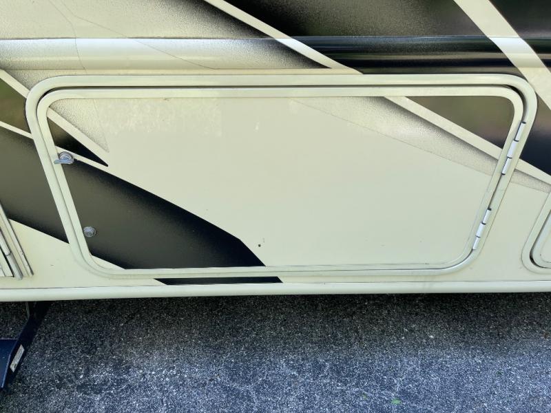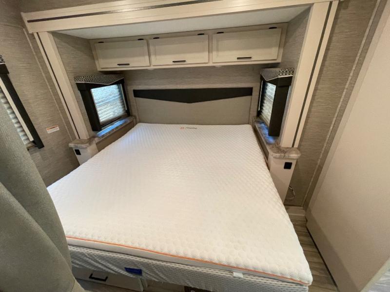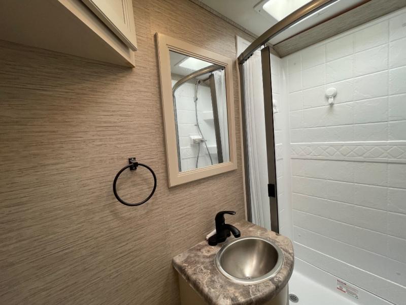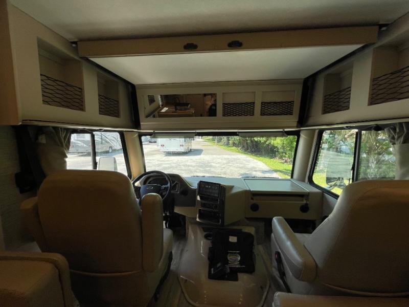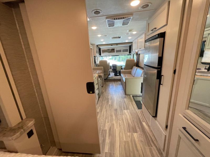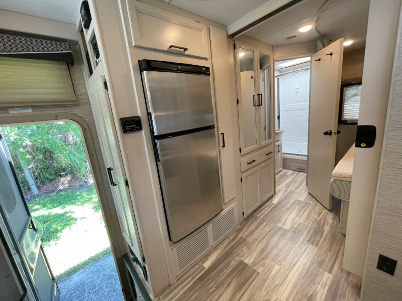 You can't beat the comfort found in this spacious motorhome. Once you park, the kids can take a rest on the drop-down overhead bunk that includes a ladder for easy access. The dream dinette provides a place to enjoy lunch at, and the jack-knife sofa is right across from the 39" TV to check the weather before a hike. After the dishes are cleaned up in the oversized stainless steel single bowl sink, the leftovers can go in the double door refrigerator. This model includes a convenient pantry and a coat/broom closet with hanging hooks to keep your jackets and shoes tidy. You will love the king bed slide out in the private bedroom, along with a 32" TV and quick access to the full bath!