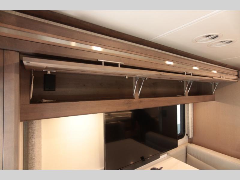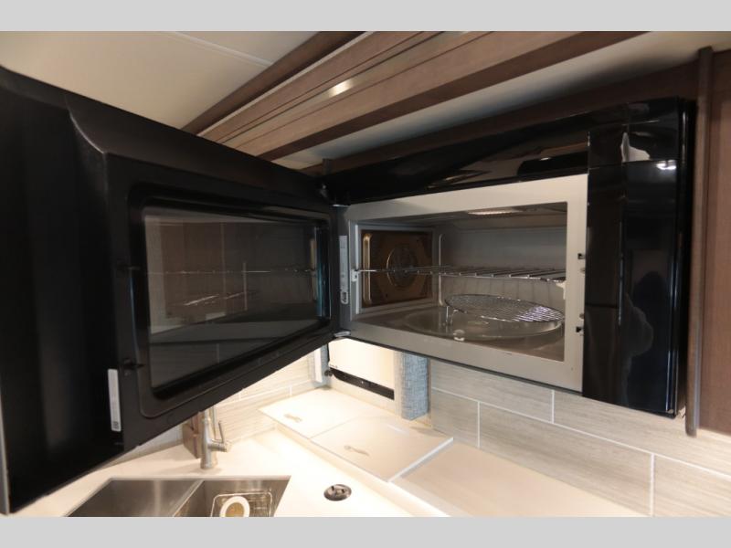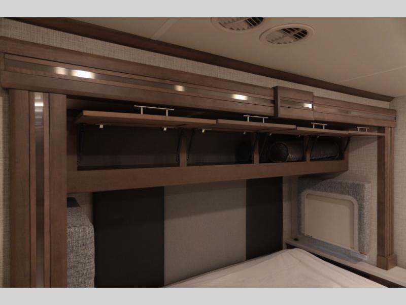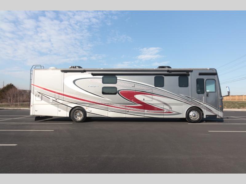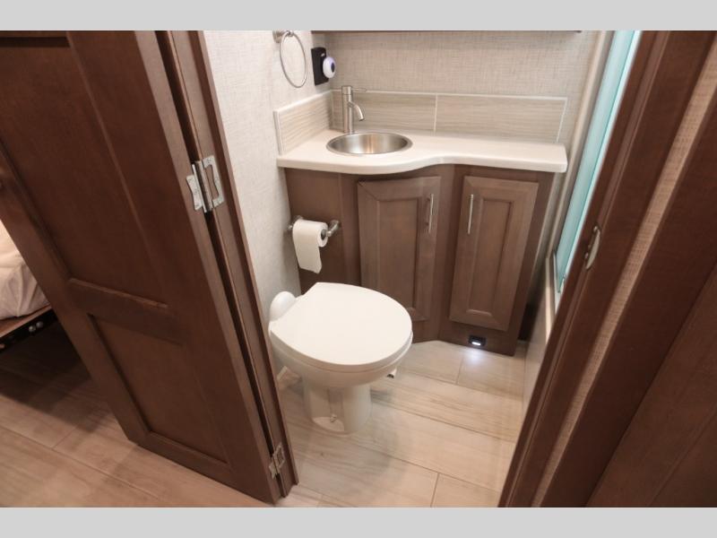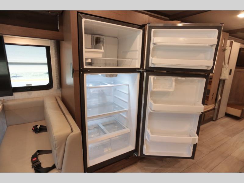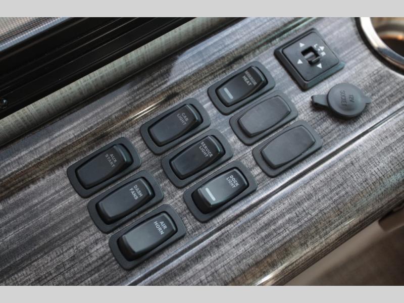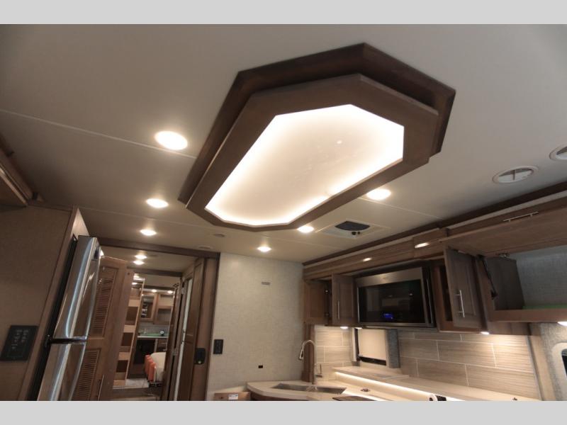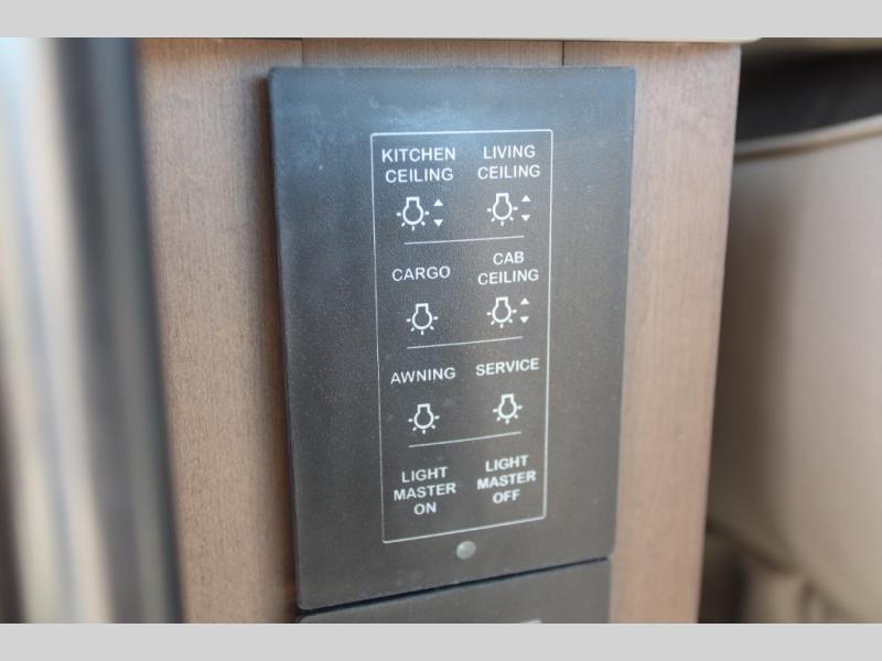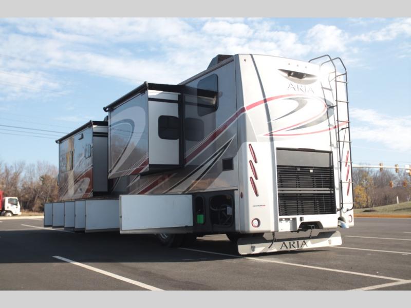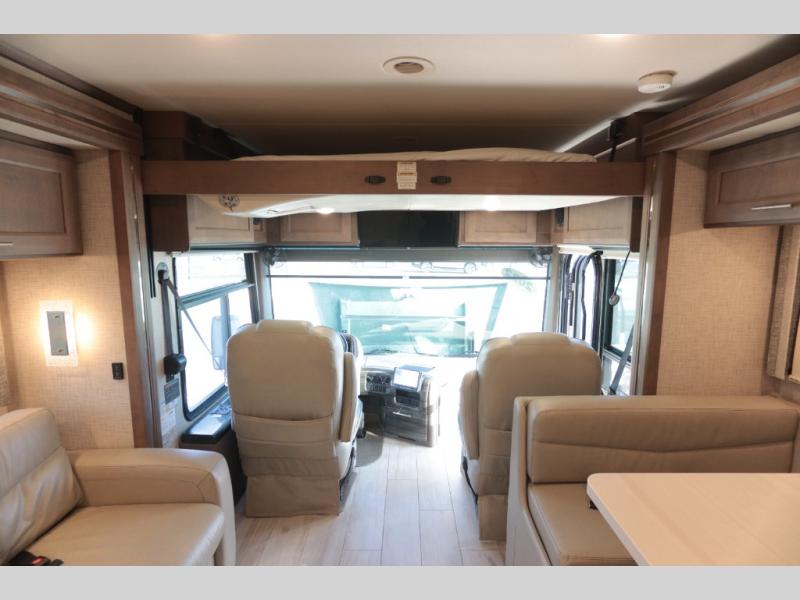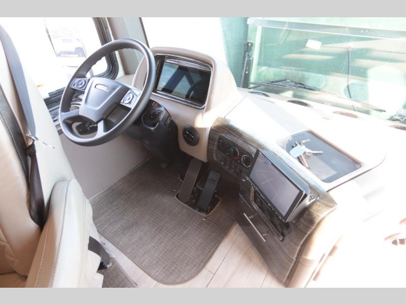 With any Aria Class A diesel motorhome by Thor Motor Coach, experience RV living with all the luxurious amenities you are accustom to, command the roadways with improved handling from the l-beam front axle with a 55-degree wheel cut, and enjoy a smooth ride thanks to the Air-Ride suspension and Sachs shock absorbers. The driver will also appreciate the 10.1" touchscreen dash radio with Bluetooth, navigation, and Sirius/XM prep when navigating the roads, and the comfort of the leatherette reclining/swivel adjustable captain's chairs. The bathroom provides an oversized full height shower with a glass door and a designer backsplash, while the kitchen provides solid surface countertops and a dinette. You will also enjoy designer tile backsplash, a large double bowl stainless steel sink with a single handle faucet, a pull-down sprayer, plus full kitchen amenities. More standout features include the Studio Collection cabinetry with rake style doors and matte finish, living room pin-up lights, and polished porcelain tile flooring, plus much much more depending on the Aria you take on the road!