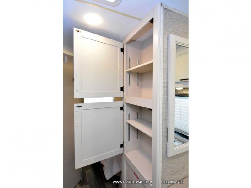 Enjoy a home on wheels with this motorhome! You will have your own private bedroom when you draw the privacy curtain to close off the rear corner 60" x 74" queen bed slide, closet, and area for an optional 32" TV. It is conveniently next to the rear corner bathroom with a 24" x 36" shower to freshen up in each morning. The 54" x 96" bunk over cab and 76" dream dinette also offer comfortable places to sleep at night. The chef can prepare their best home cooked meals with the three burner cooktop and the flip-up countertop will make it a little easier too. For your entertainment there is a 39" TV with swivel by the bunk over cab and an optional exterior 32" TV that can be added to watch the big game outside!
