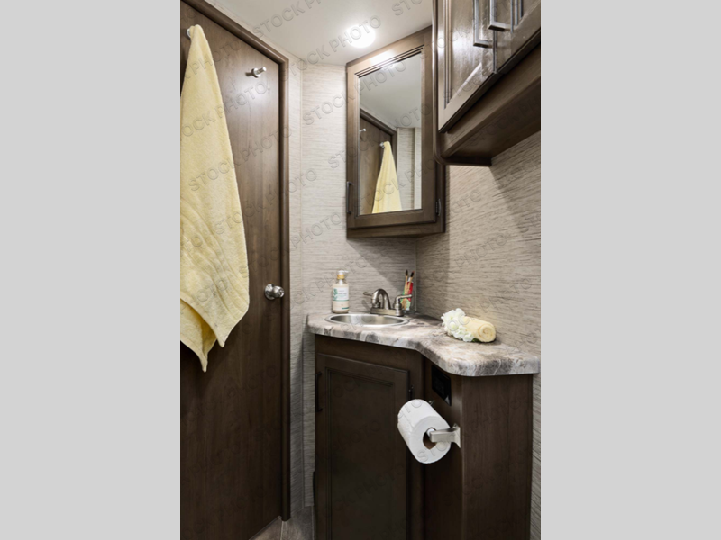 Make your dreams come true with this motorhome! You won't have to worry about eating fast food while on the road thanks to the fully equipped kitchen with a three burner cooktop, double door refrigerator, microwave oven, and flip-up countertop. Enjoy your meals at the 71" dream dinette then play a card game or relax on the 68" jackknife sofa to watch a movie with the 39" TV with swivel. Both of these areas can transform into extra sleeping spaces in addition to the 54" x 96" bunk over cab and the rear corner 72" x 74" king bed with a privacy curtain to draw and a closet to store your clothes. There is also a rear corner bathroom to freshen up in each morning with a 30" x 36" shower!