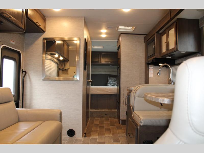 This is your chance to get out and see the world with one of these Thor Motor Coach Class C gas motorhomes! A Ford E-Series chassis or optional Chevrolet chassis powers these units to all of your destinations. The 31' models offer an even smoother ride with SmoothTECH ride enhancement by MORryde so you can turn on cruise control and sit back in the captain's chairs to enjoy your journey. You can even bring along your furry friend and not worry about messes becoming stains thanks to the residential vinyl flooring throughout. The 7" touchscreen dash radio comes with a backup monitor and depending on which model you choose you could have plug and play screen mirroring or Android Auto and Apple CarPlay to play your favorite tunes. Heads will turn down the highway with the slick fiberglass exterior with standard graphics package. Come find your favorite model today!