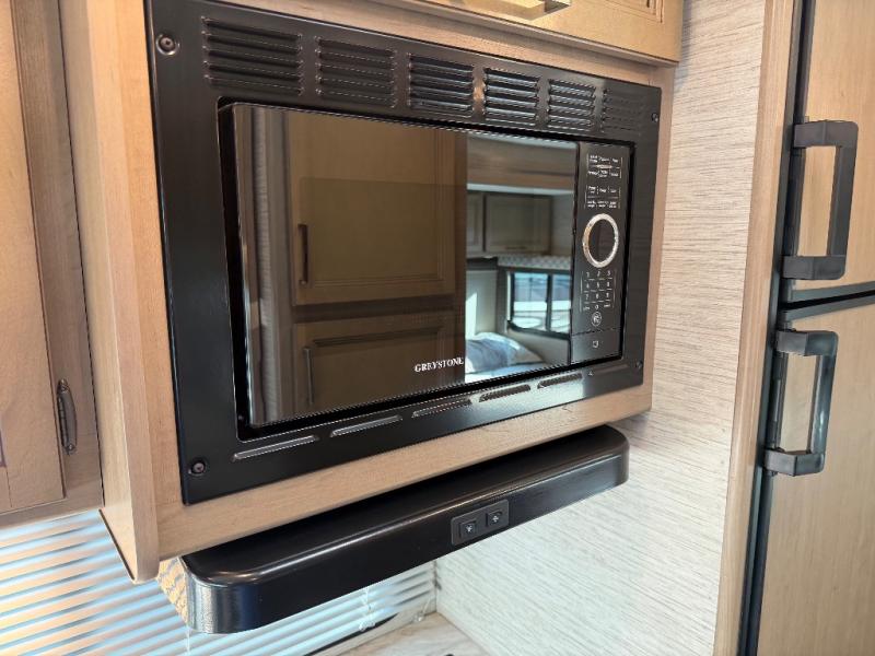 Enjoy a home on wheels with this motorhome! You will have your own private bedroom when you draw the privacy curtain to close off the rear corner 60" x 74" queen bed slide, closet, and area for an optional 32" TV. It is conveniently next to the rear corner bathroom with a 24" x 36" shower to freshen up in each morning. The 54" x 96" bunk over cab and 76" dream dinette also offer comfortable places to sleep at night. The chef can prepare their best home cooked meals with the three burner cooktop and the flip-up countertop will make it a little easier too. For your entertainment there is a 39" TV with swivel by the bunk over cab and an optional exterior 32" TV that can be added to watch the big game outside!