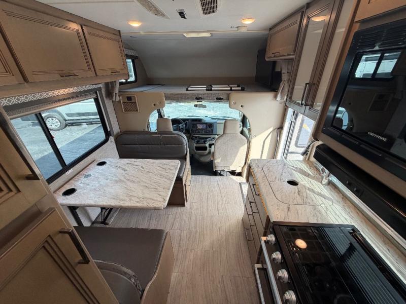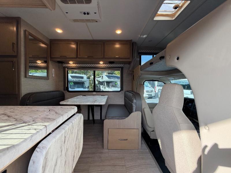 This is your chance to get out and see the world with one of these Thor Motor Coach Class C gas motorhomes! A Ford E-Series chassis or optional Chevrolet chassis powers these units to all of your destinations. The 31' models offer an even smoother ride with SmoothTECH ride enhancement by MORryde so you can turn on cruise control and sit back in the captain's chairs to enjoy your journey. You can even bring along your furry friend and not worry about messes becoming stains thanks to the residential vinyl flooring throughout. The 7" touchscreen dash radio comes with a backup monitor and depending on which model you choose you could have plug and play screen mirroring or Android Auto and Apple CarPlay to play your favorite tunes. Heads will turn down the highway with the slick fiberglass exterior with standard graphics package. Come find your favorite model today!