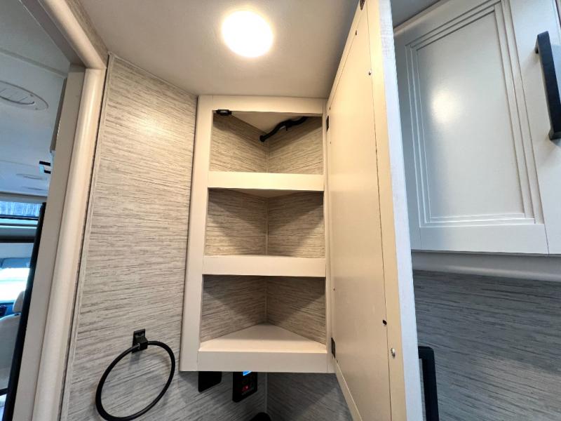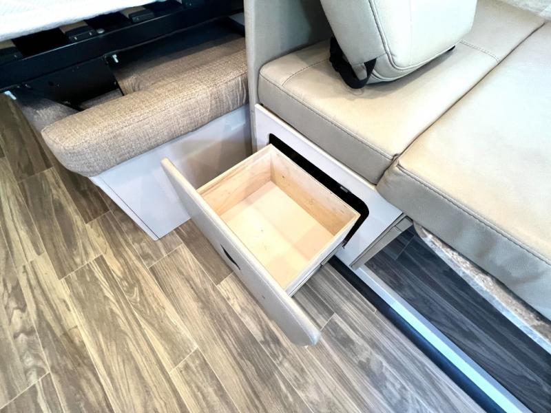The Thor Motor Coach Compass AWD Class B+ gas motorhome is small but mighty! It includes all-wheel drive, and it is built upon a Ford Transit chassis, 3.5L V6 Eco Boost turbo gas engine, and Ford ten-speed automatic overdrive transmission. The Ford safety features provide excellent care while driving, and you can stay connected to your Compass AWD with the FordPass Connect. The power patio awning with LED lights can be moved out into position with just one touch on your cell phone thanks to the Rapid Camp+ multiplex control system. You will have a 100W solar panel with controller, a single roof air conditioner, a Winegard ConnecT 2.0 Wi-Fi/4G/TV antenna, and a tankless water heater as some of the top electrical and plumbing features.