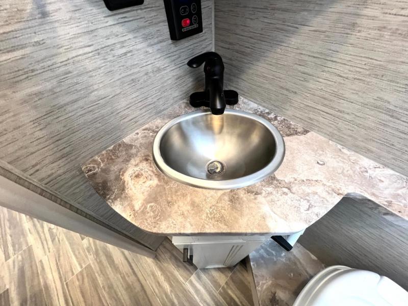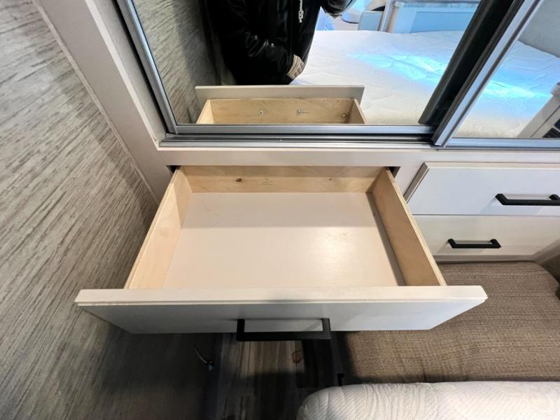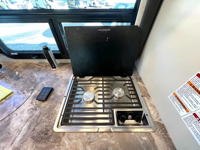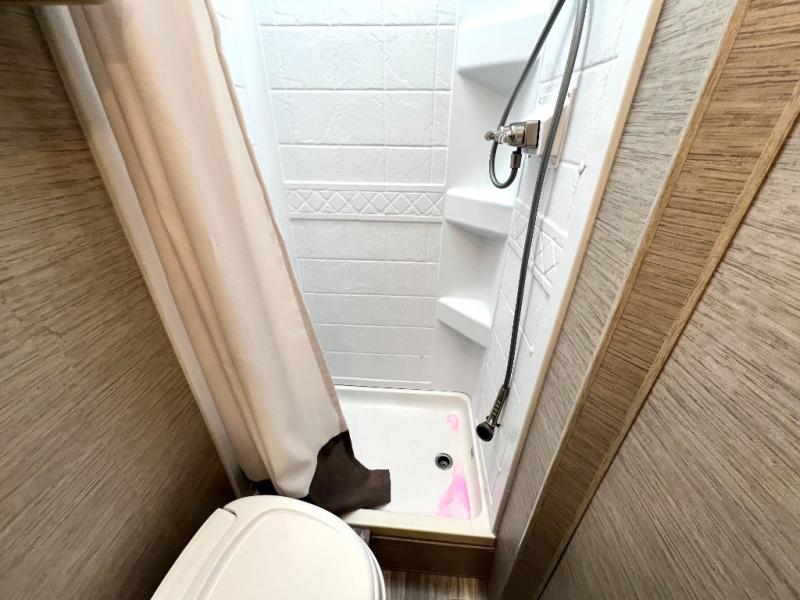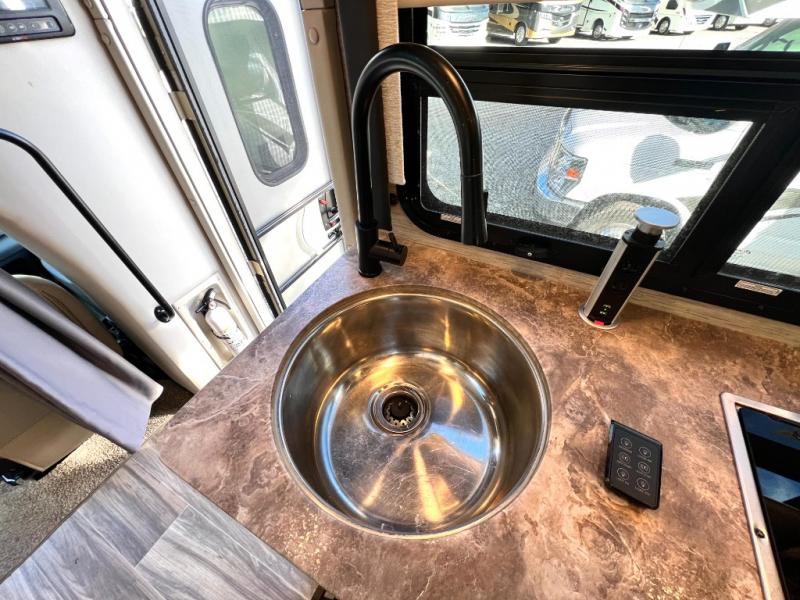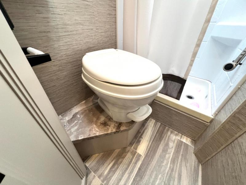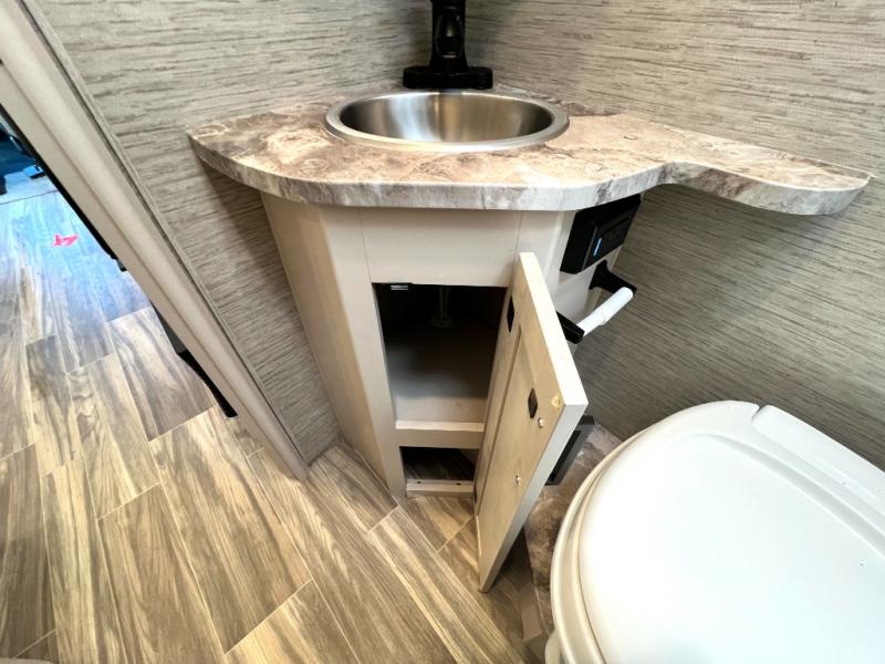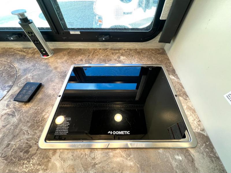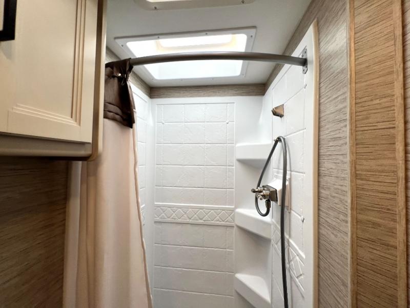 You can tour a local winery or trek up north to find a cozy and secluded camping spot with this Compass AWD Class B+ gas motorhome! All of your needs will be met with the excellent features and amenities included on this coach, like the full bathroom complete with a 24" x 32" shower, three robe hooks, a shower skylight, a foot-flush toilet, and a power bath vent. The kitchen is ready to help you make mobile meals, and the 68" Dream Dinette is the perfect place for eating those meals or playing a game later on. At the dinette table top, you'll find a wireless phone charger with USB plug so that you can charge your phones. There is a privacy curtain that sections off the flip-up RV queen bed, and you'll also find a 32" TV in the bedroom. The second 32" TV is located out in the main living area for everyone else to watch.