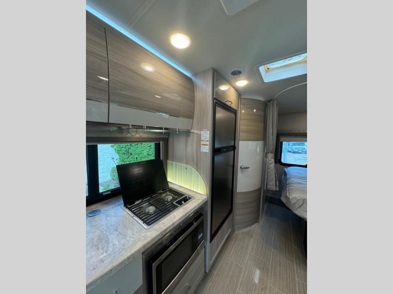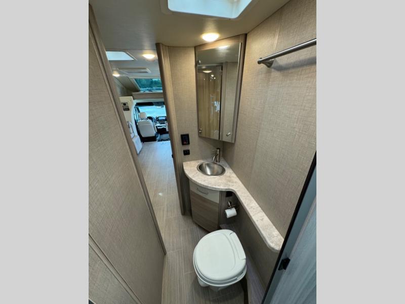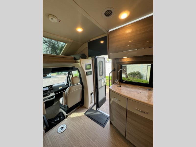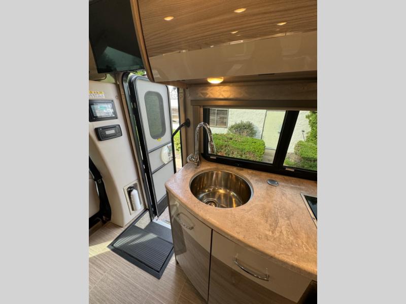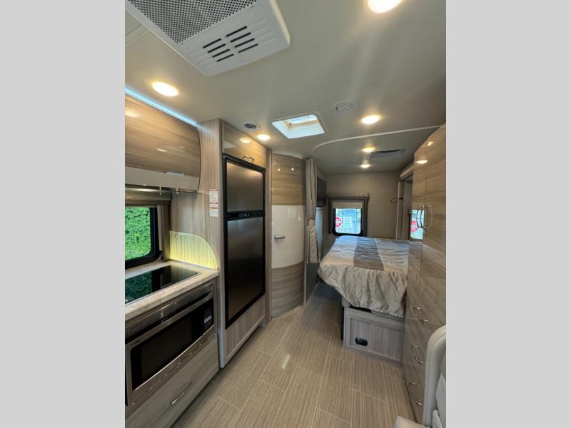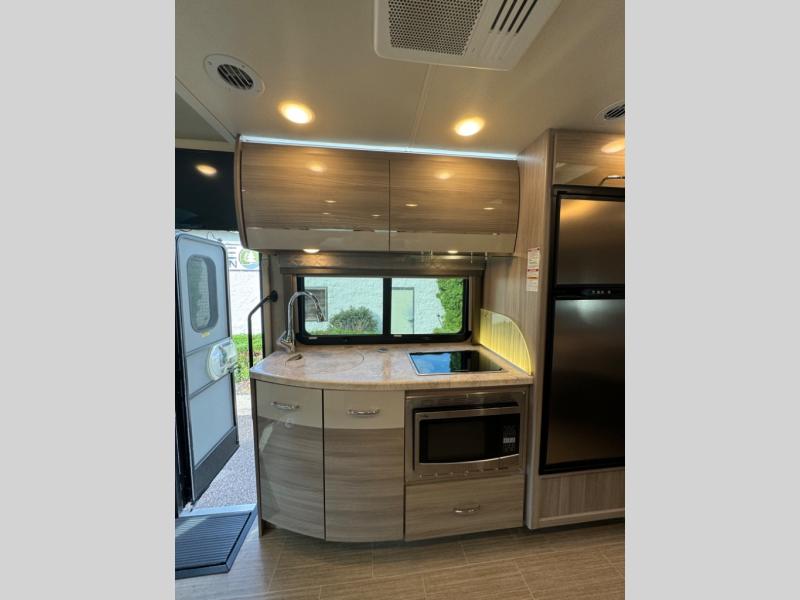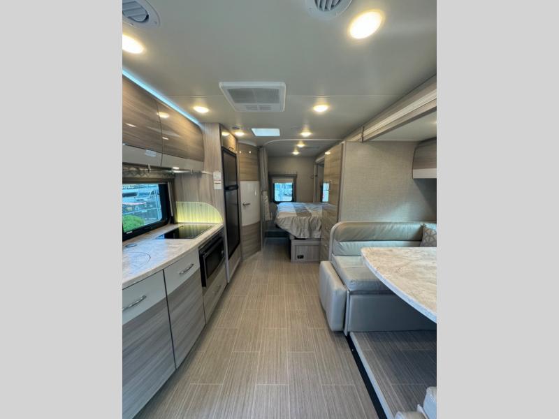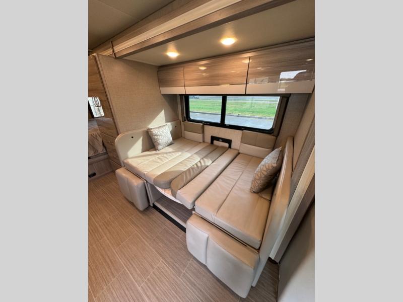 Luxury comes standard in the Delano Sprinter Class C diesel motorhomes by Thor Motor Coach. You will find it so easy to maneuver the road with the Mercedes-Benz Safety Package that includes features such as active braking assist and distance regulator distronic plus that will help keep a safe distance from vehicles in front of you. The frameless windows and the full-body paint package with gel coated sidewalls is sure to be eye-catching, plus there is invisible front paint protection for added defense against the elements. Each model includes the Rapid Camp+ multiplex wiring control system that will make set-up easier than ever, a Winegard ConnecT 2.0 WiFi/4G/TV antenna to keep you connected to the outside world, and a whole coach water filtration system for fresh H2O day or night. The Delano Sprinter also includes many interior comforts, like the easy-to-clean residential vinyl flooring, the high-gloss Euro-style cabinetry, and the Leatherette furniture!