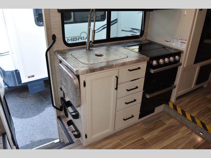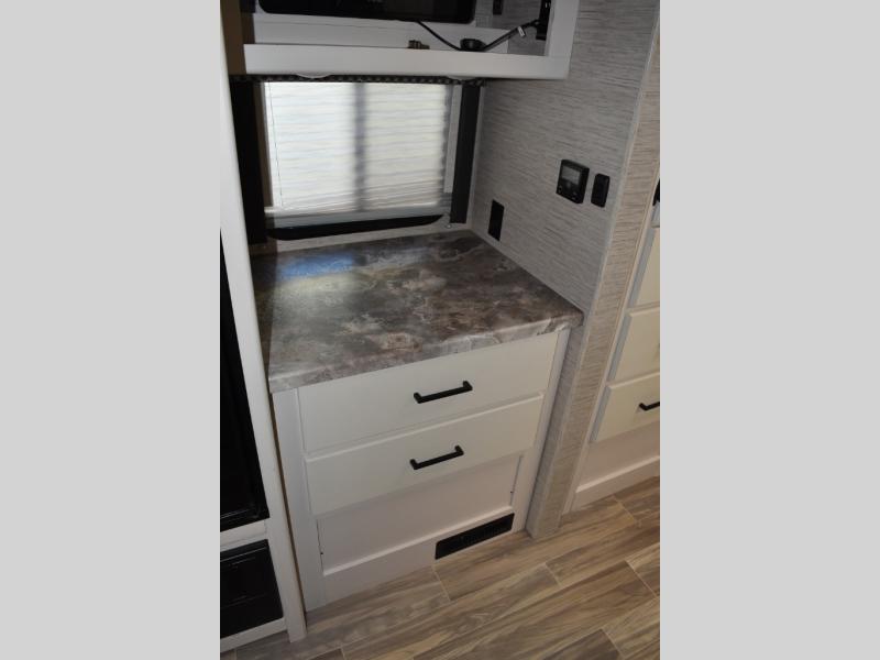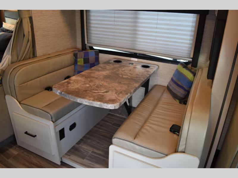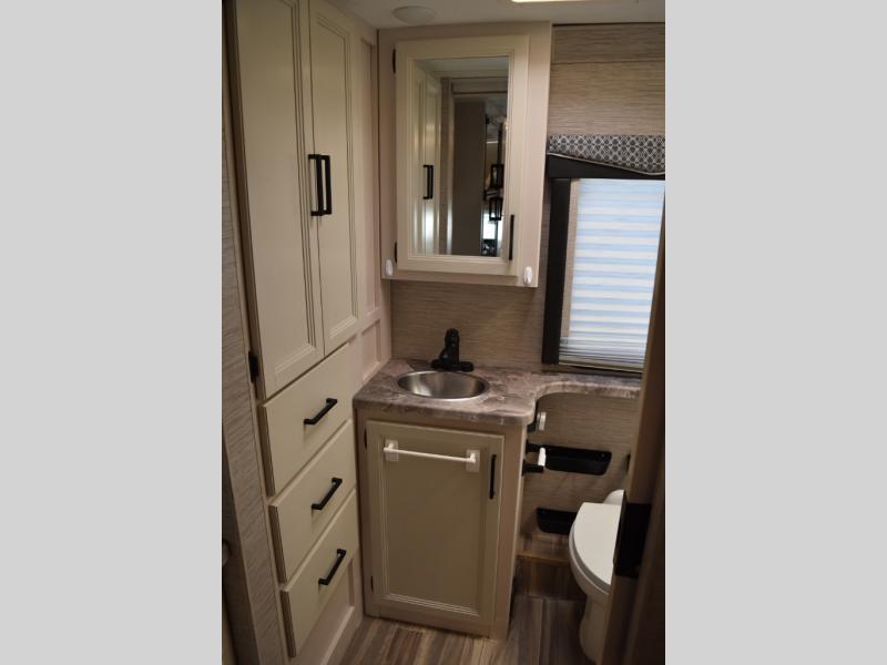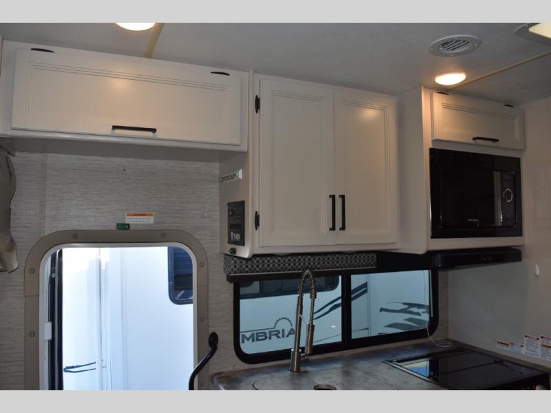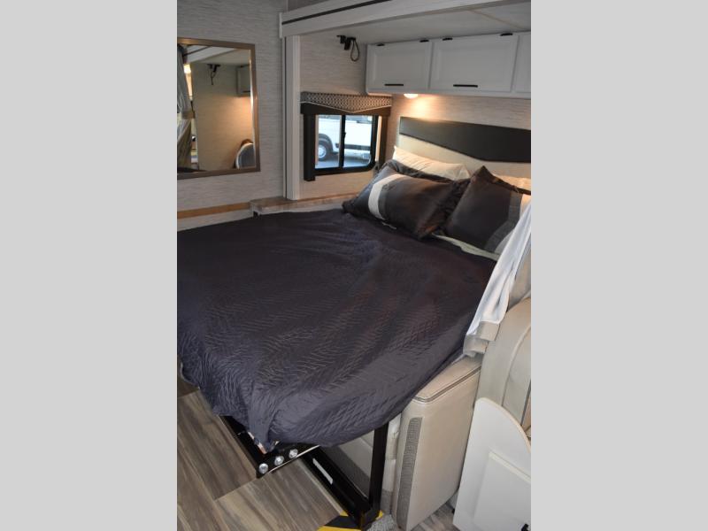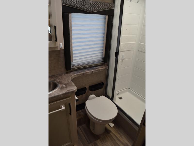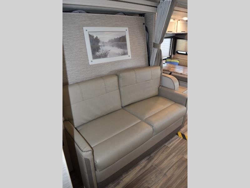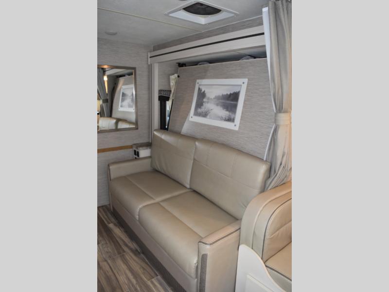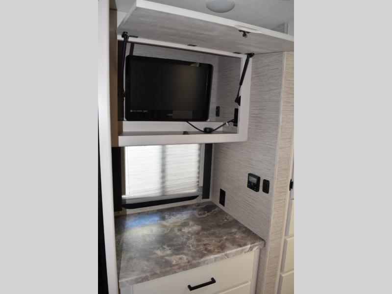 Its time to enjoy life and venture to see new places, enjoy events and visit with friends in your state or even further! You will love having a living area as well as a bedroom with the versatility of the Murphy bed and sofa combination. And the curtain allows you privacy when you have overnight guests sleeping on the dream dinette and the cab over bunk. You might like to add the 32" TV option across from the sofa if the 39" TV with swivel in the cab area isn't enough. There are full kitchen amenities for the cook including a double door refrigerator and a pantry to store all the goodies. And the sliding door into the rear full bathroom saves even more space for you to enjoy getting cleaned up and/or ready for bed or the next adventure.