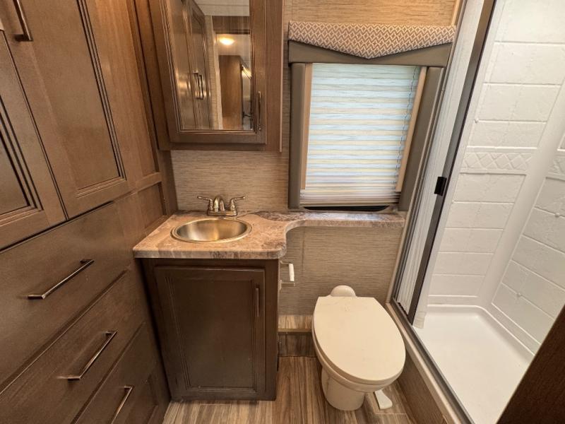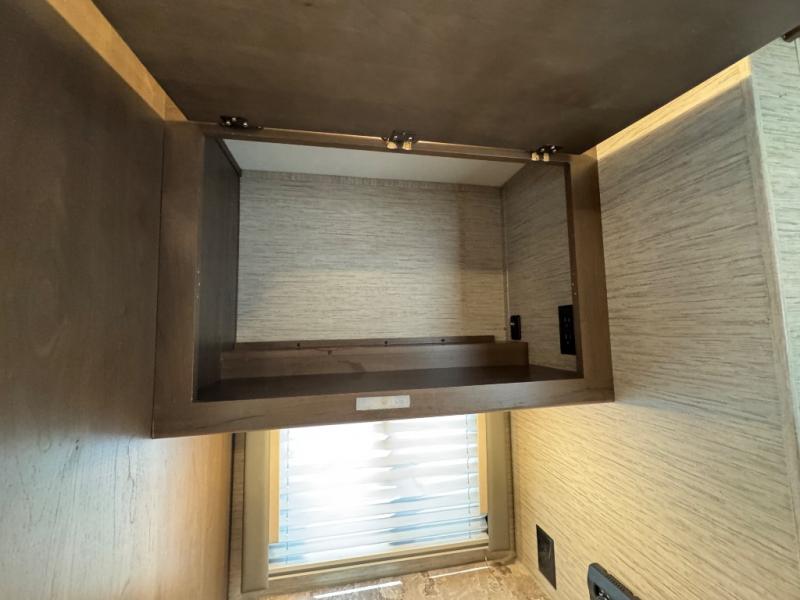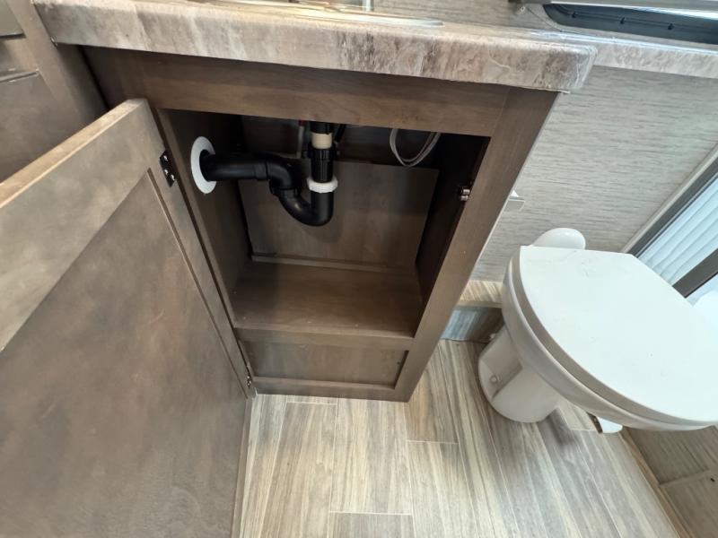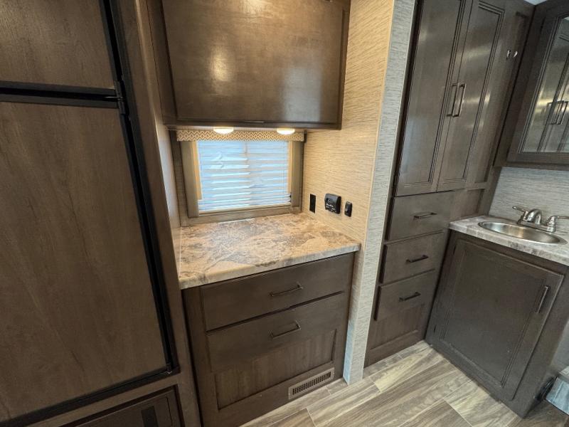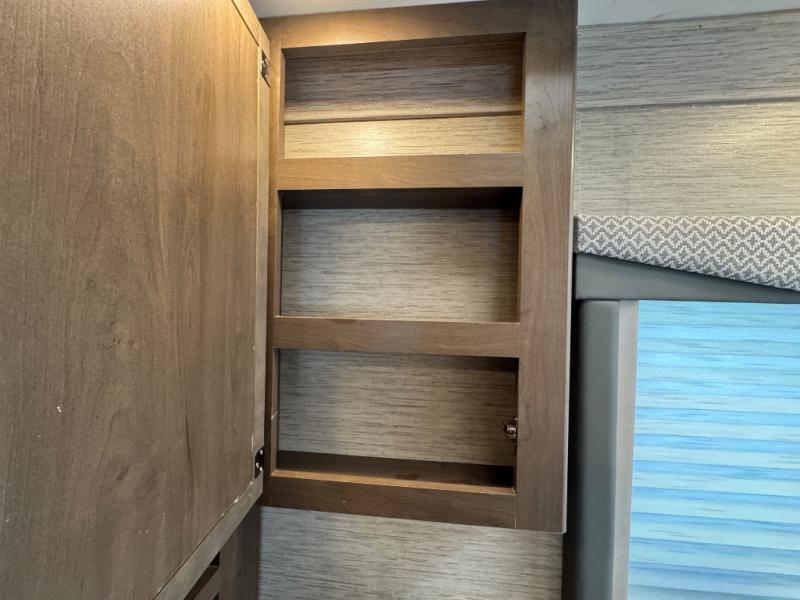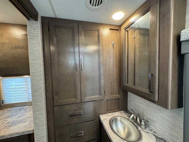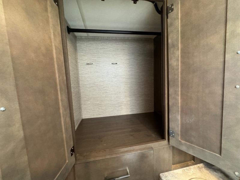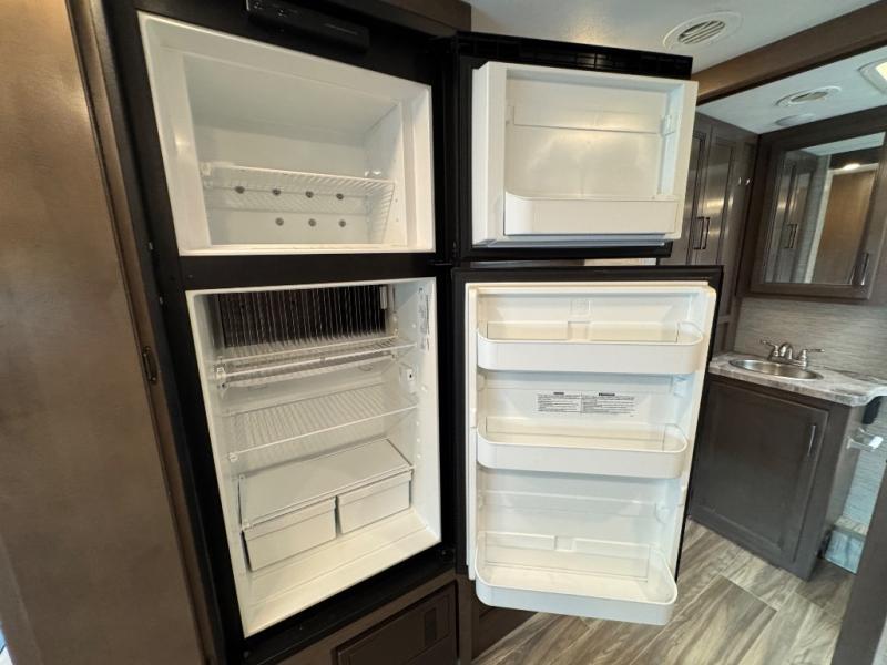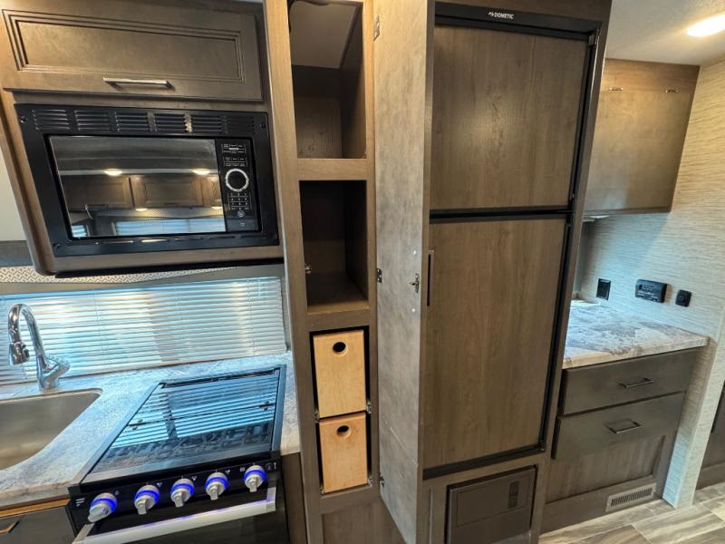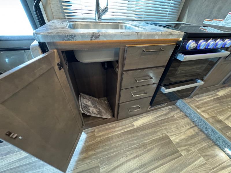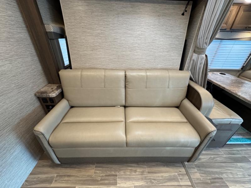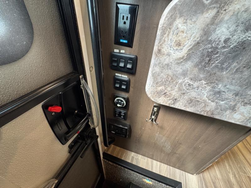 Its time to enjoy life and venture to see new places, enjoy events and visit with friends in your state or even further! You will love having a living area as well as a bedroom with the versatility of the Murphy bed and sofa combination. And the curtain allows you privacy when you have overnight guests sleeping on the dream dinette and the cab over bunk. You might like to add the 32" TV option across from the sofa if the 39" TV with swivel in the cab area isn't enough. There are full kitchen amenities for the cook including a double door refrigerator and a pantry to store all the goodies. And the sliding door into the rear full bathroom saves even more space for you to enjoy getting cleaned up and/or ready for bed or the next adventure.