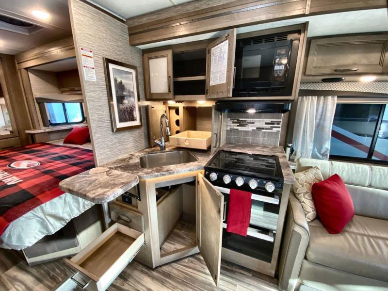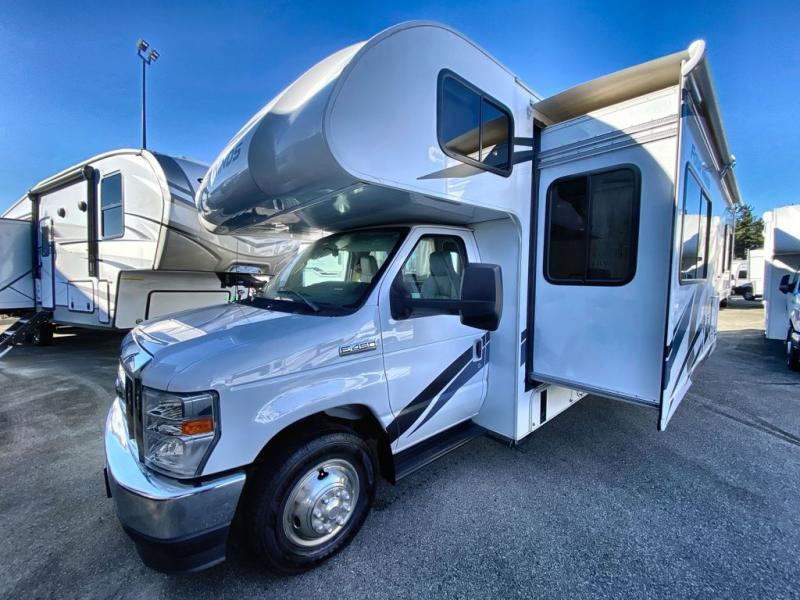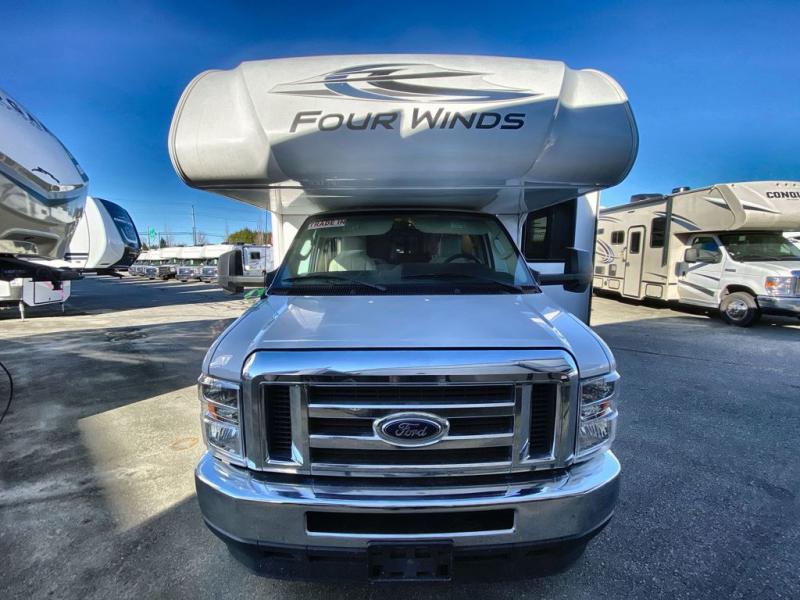With any Four Winds Class C gas motorhome, you can travel in a trustworthy Ford E-Series chassis with 350HP. Each is built with welded sidewall cage construction and a welded tubular aluminum roof, a one-piece fiberglass cap, and includes a slick fiberglass exterior with graphics package for style and years of enjoyment on the open road. Inside, you will enjoy the well-equipped kitchen, the spacious bathroom, the sleeping accommodations and the Winegard ConnecT 2.0 WiFi/4G/TV antenna that allows you to stay connected. With several floorplans to choose from and options to add, you will surely find one that fits your family's needs or your friend's approval. Choose today!