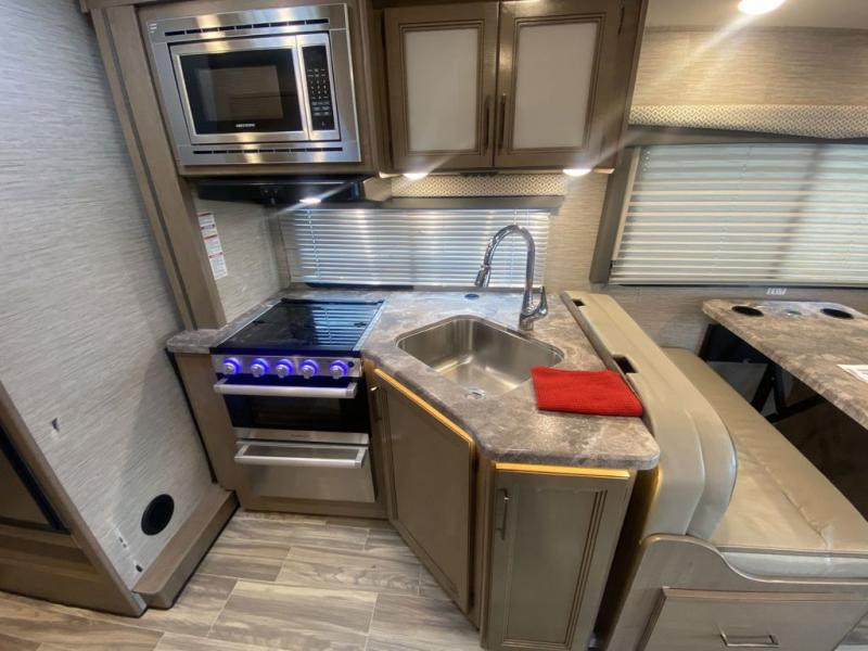 With any Four Winds Class C gas motorhome, you can travel in a trustworthy Ford E-Series chassis with 350HP. Each is built with welded sidewall cage construction and a welded tubular aluminum roof, a one-piece fiberglass cap, and includes a slick fiberglass exterior with graphics package for style and years of enjoyment on the open road. Inside, you will enjoy the well-equipped kitchen, the spacious bathroom, the sleeping accommodations and the Winegard ConnecT 2.0 WiFi/4G/TV antenna that allows you to stay connected. With several floorplans to choose from and options to add, you will surely find one that fits your family's needs or your friend's approval. Choose today!