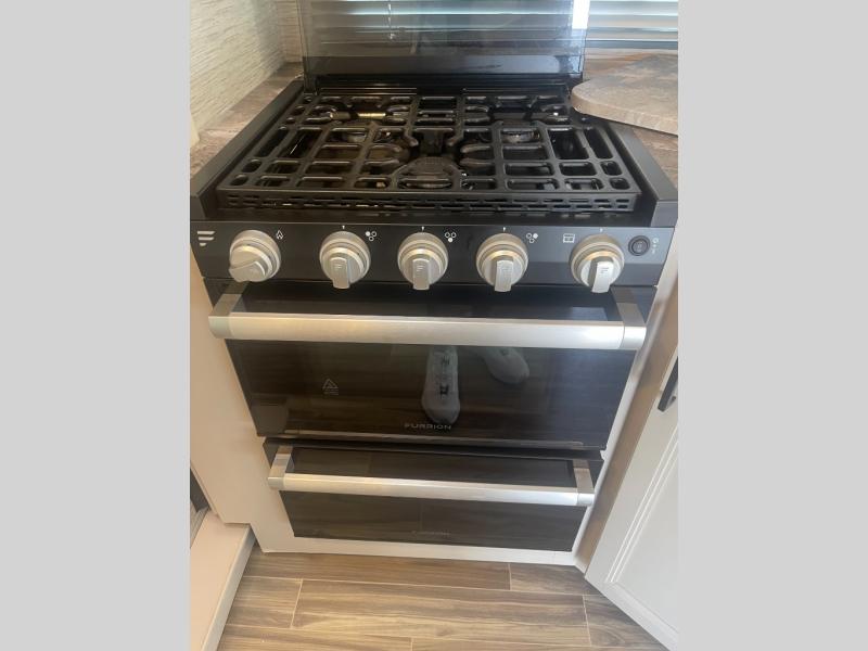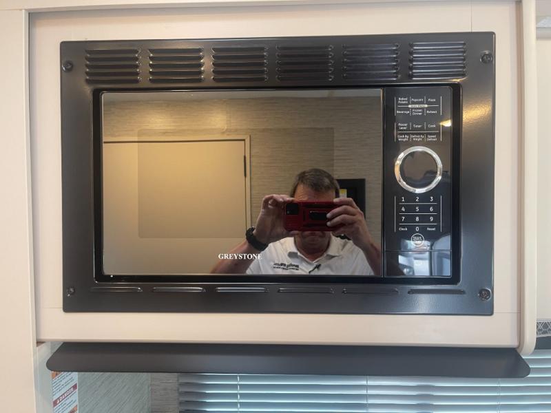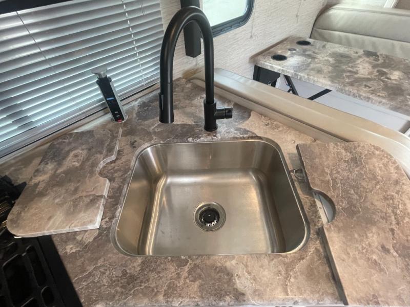 Perfect for a couple or a growing family, this coach will allow you to enjoy inside comforts and outdoor scenery where ever you drive and park! You will have great views out of the many windows when you are indoors, and the power awning offers an outdoor living area protected by the elements when you want some fresh air. The cook will love the large single bowl stainless steel sink with single handle faucet with a pull-down sprayer when cleaning fruits and veggies plus the dishes, the gas cooktop and microwave when making meals, as well as the double door refrigerator to hold all the cold items. The slide out creates even more floor space, the furniture offers a place to dine and visit as well as sleep, and the private bedroom with a full bathroom just steps away will complete the deal!
