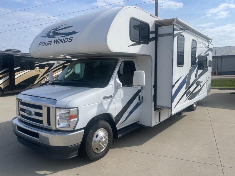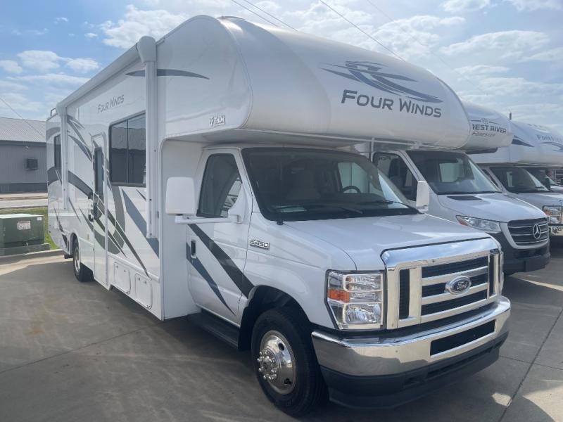 With any Four Winds Class C gas motorhome, you can travel in a trustworthy Ford E-Series chassis with 350HP. Each is built with welded sidewall cage construction and a welded tubular aluminum roof, a one-piece fiberglass cap, and includes a slick fiberglass exterior with graphics package for style and years of enjoyment on the open road. Inside, you will enjoy the well-equipped kitchen, the spacious bathroom, the sleeping accommodations and the Winegard ConnecT 2.0 WiFi/4G/TV antenna that allows you to stay connected. With several floorplans to choose from and options to add, you will surely find one that fits your family's needs or your friend's approval. Choose today!