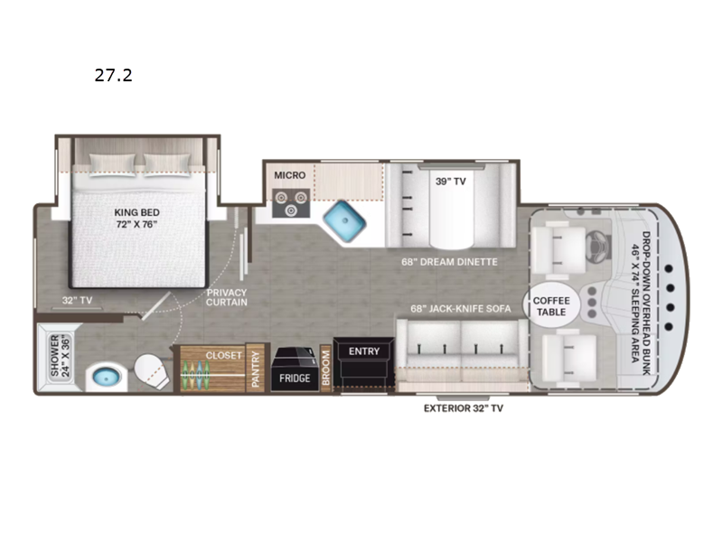 | TV Info | LR 39" LED TV, BR 32" LED TV, Ext. 32" LED TV |