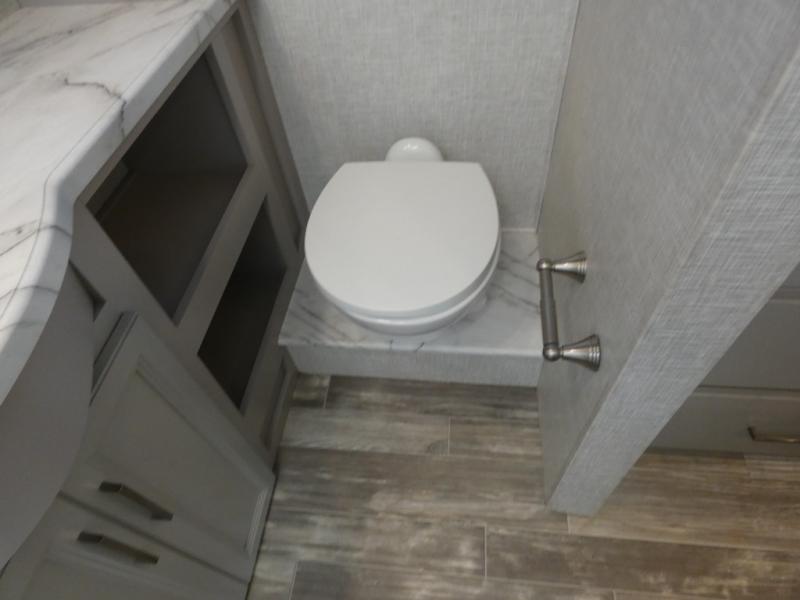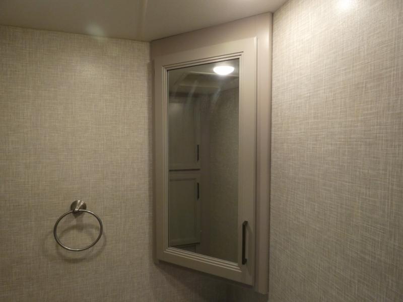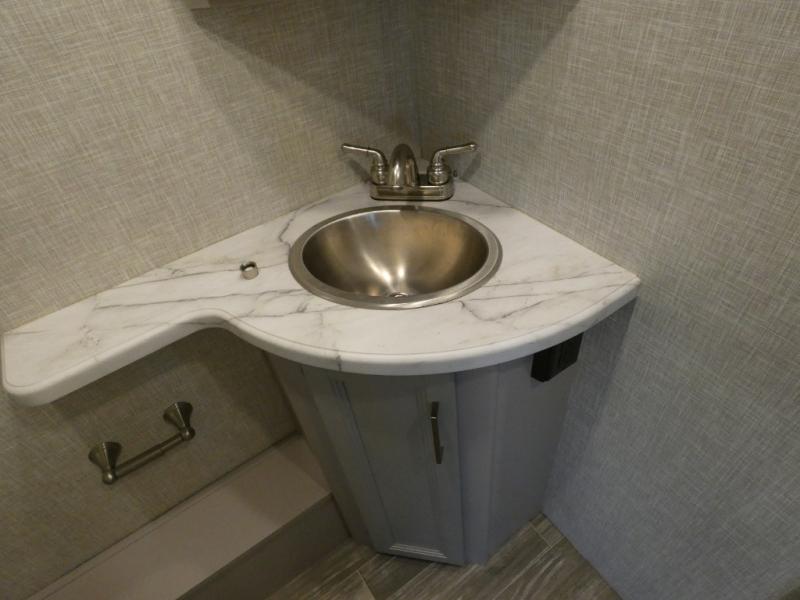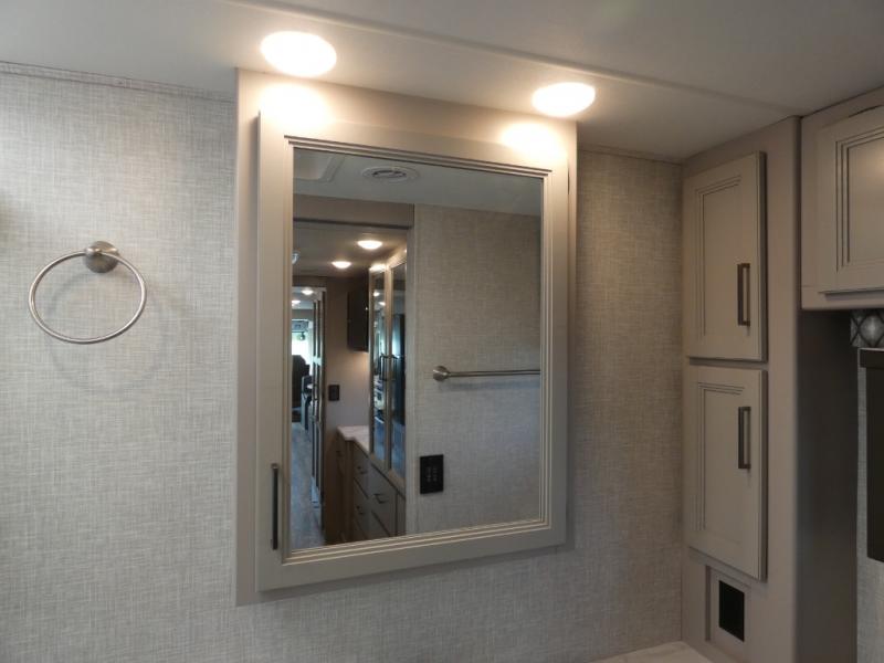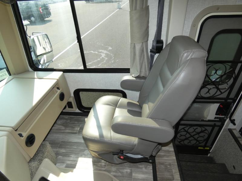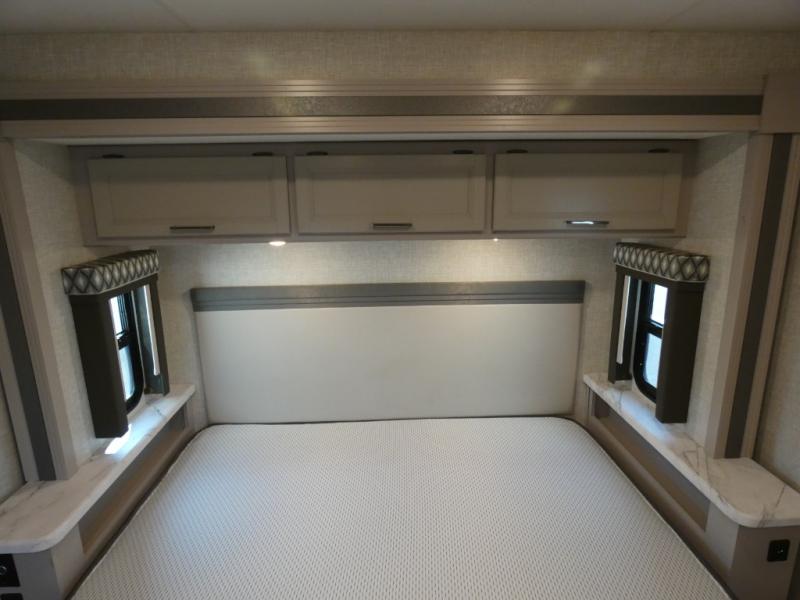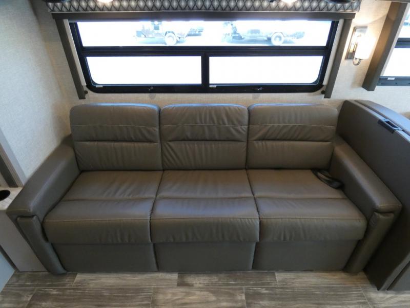 A bath and a half in this coach make it perfect for trips with friends and family. You will have tons of space provided by the two slide outs, plus a sleeping capacity of six to seven people each night. The expanding sofa bed has a great view of the 39" TV, and the Dream Dinette will be great for meals times and game night. Whip up a hearty meal on the three burner gas cooktop, or use the convenient over-the-range microwave oven. There is also a 12 cu. ft. residential refrigerator and a pantry for food storage. You'll be very pleased with the master bedroom that includes a king bed, a 32" TV, and a closet to keep your clothes wrinkle-free. There is even a second closet with stackable washer and dryer prep to make life on the road easier than ever.