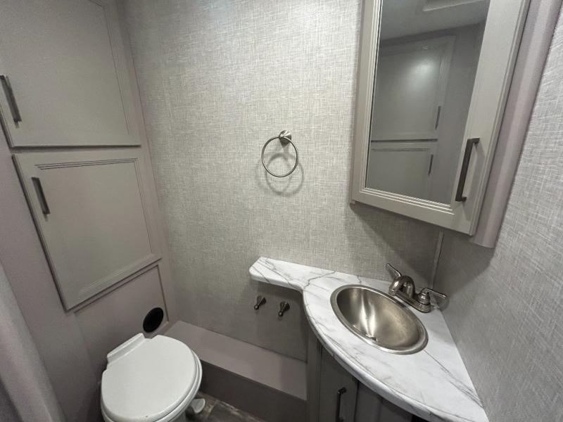 Automatic leveling jacks, slide toppers, exterior awning, and solar panel prep