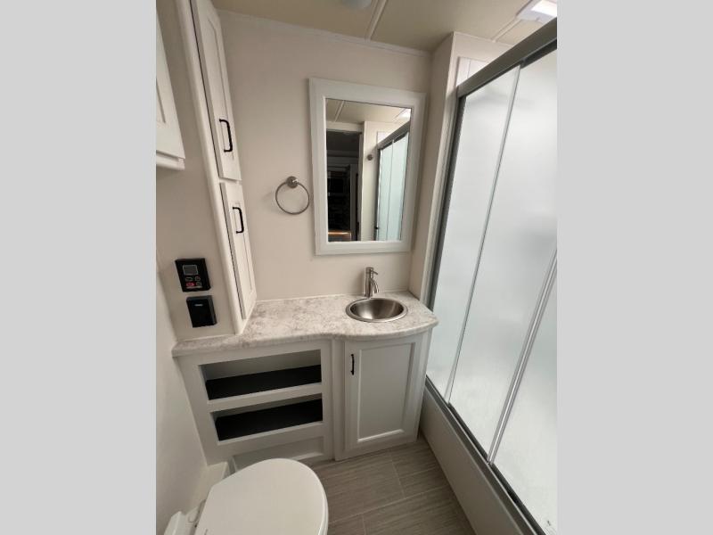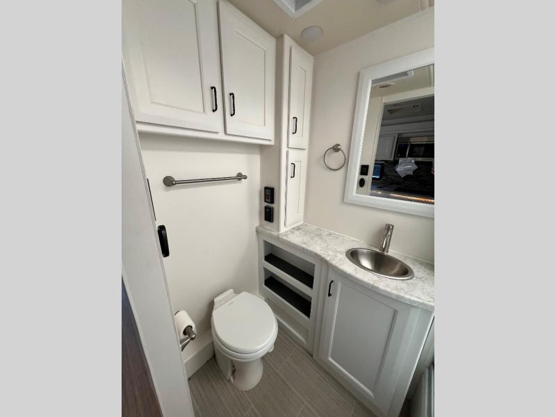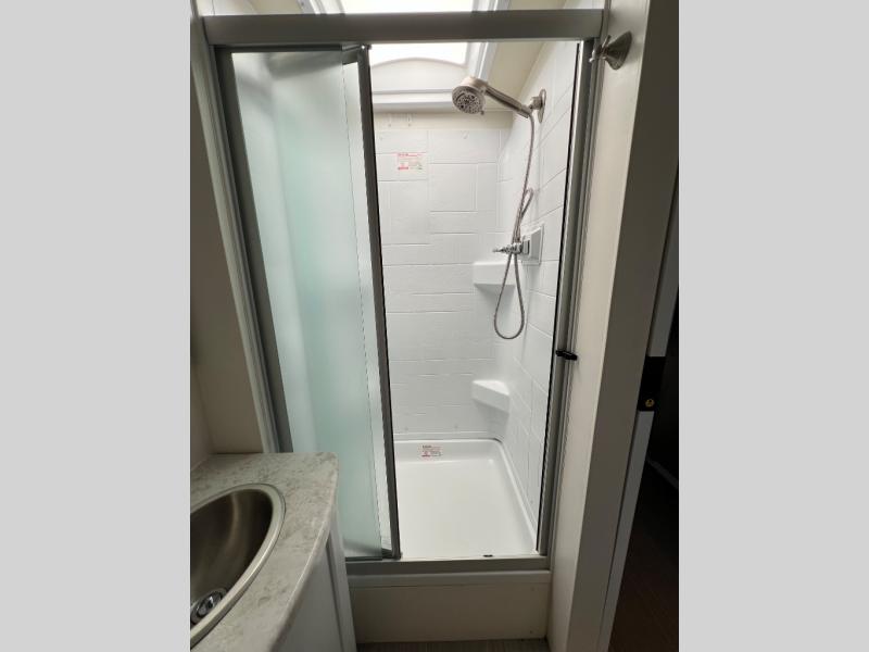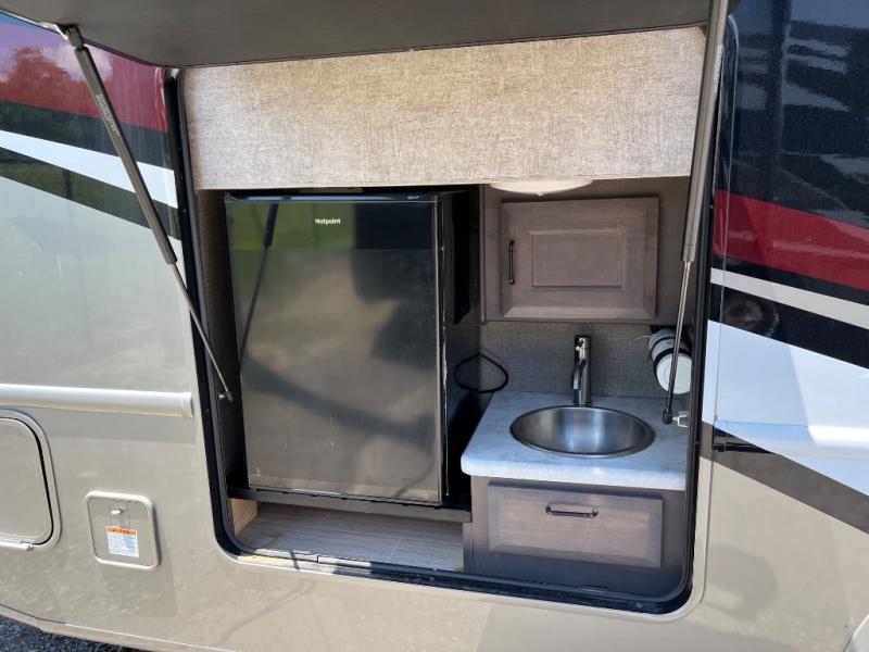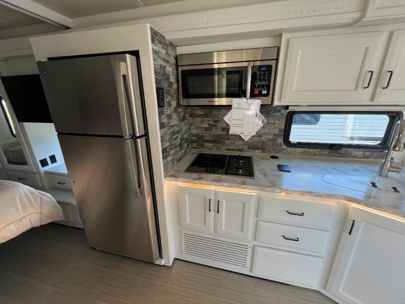 When you're ready to upgrade your RV, choose this Magnitude Super C diesel motorhome for a truly comfortable unit! The driver is sure to love the four-wheel drive. After you've arrived at your destination, you can prepare lunch on the two-burner gas range with single induction cooktop, or make something quick in the convection microwave. Your kids or guests can climb up into the 59" x 80" bunk over the cab and watch a movie on the 39" TV that also swivels for when the whole family wants to watch a show. This unit includes a rear bedroom with a Tilt-A-View inclining RV king bed and 32" TV, and the full bath is ready when you are since the tankless water heater provides hot water wherever you go.