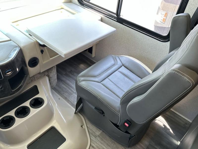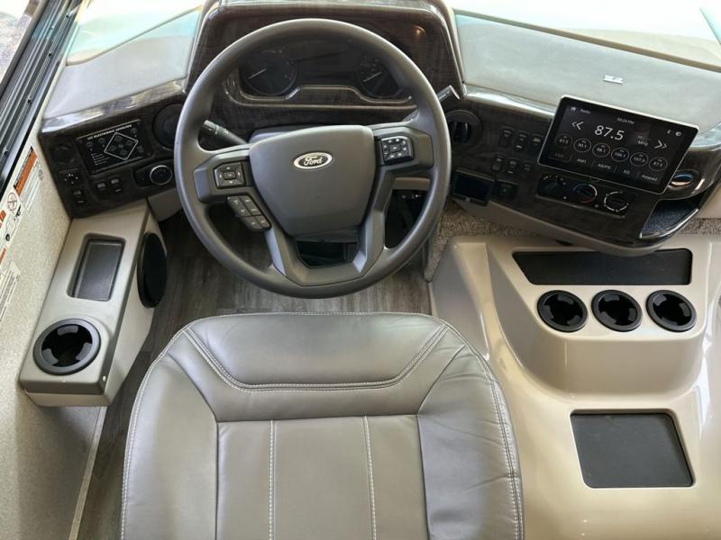 With any Miramar Class A gas motorhome by Thor Motor Coach you will find a durable welded tubular aluminum roof and sidewall cage construction, rotocast storage compartments, and frameless windows for a more sleek look. The 100-watt solar charging system with a power controller will allow you to do some off-grid camping, and you'll have an Onan RV QG 5500 gas generator on board for all your power needs. Each model includes the Rapid Camp+ multiplex wiring control system for quick and easy set up, and the Winegard ConnecT WiFi extender +4G will be perfect if you need to telecommute. Inside you'll find residential vinyl flooring, leatherette furniture, plus satin finish cabinetry with solid wood flat panel cabinet doors and nickel finish hardware for a truly luxurious coach!
