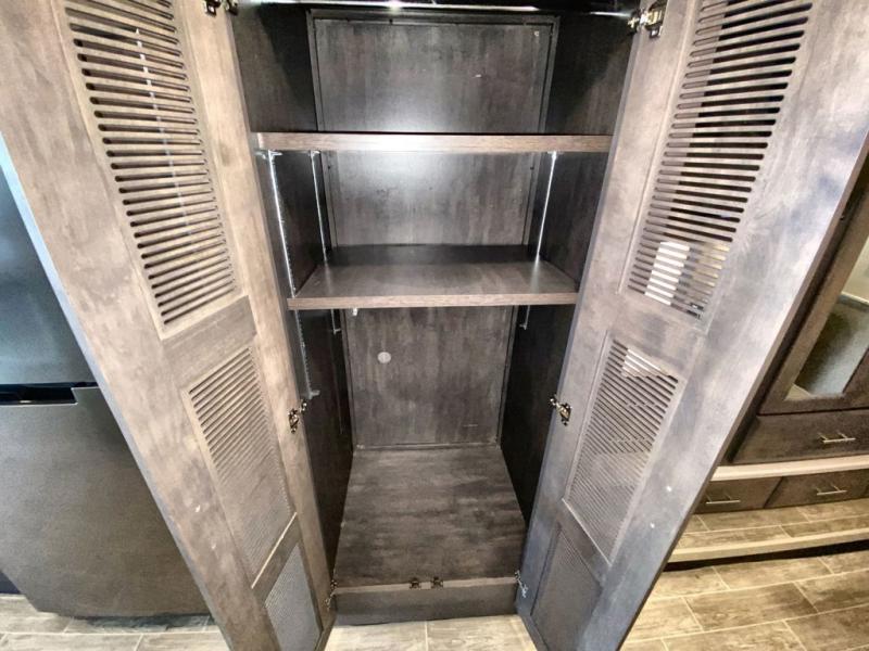 Make yourself at home in this double slide out coach! When you arrive at your destination, set up the the 20' power awning with LED lights and enjoy the 39" exterior TV. You can prepare lunch on the two burner single induction cooktop, or use the stainless steel convection microwave, and there is a Dream Dinette to dine at. You'll also find 67" theater seating across from the retractable 49" LED TV to watch your favorite shows. You're going to love the rear bedroom with its Tilt-A-View inclining king bed that will allow you to read a book in bed, plus there is a 32" TV and a closet to store your belongings. And this coach wouldn't be complete without stackable washer and dryer prep!