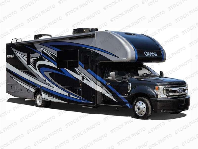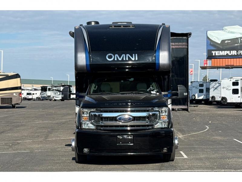 The Omni Super C diesel motorhome by Thor Motor Coach starts with a durable welded tubular steel floor, vacu-bond laminated roof, walls, and floors with block foam insulation, and a full-body paint package with gel-coat sidewalls. Each model includes either a F550 or F600 Power Stroke 4 x 4 Turbo Diesel engine that will allow you to maneuver tougher terrain when the adventure calls for it. The cockpit is every captain's dream with its power adjustable driver's seat, side view and back-up camera system, heated remote exterior mirrors, and more. You can control all of your coach's functions with the RapidCamp+ multiplex wiring control system, and the Winegard ConnecT Wi-Fi extender with 4G will allow you to say in touch with the outside world as you travel. Each model includes residential linoleum throughout, Leatherette furniture, solid surface countertops in the kitchen, and a glass shower door for that added touch of luxury. Come see all the other great features the Omni Super C diesel motorhome has to offer!