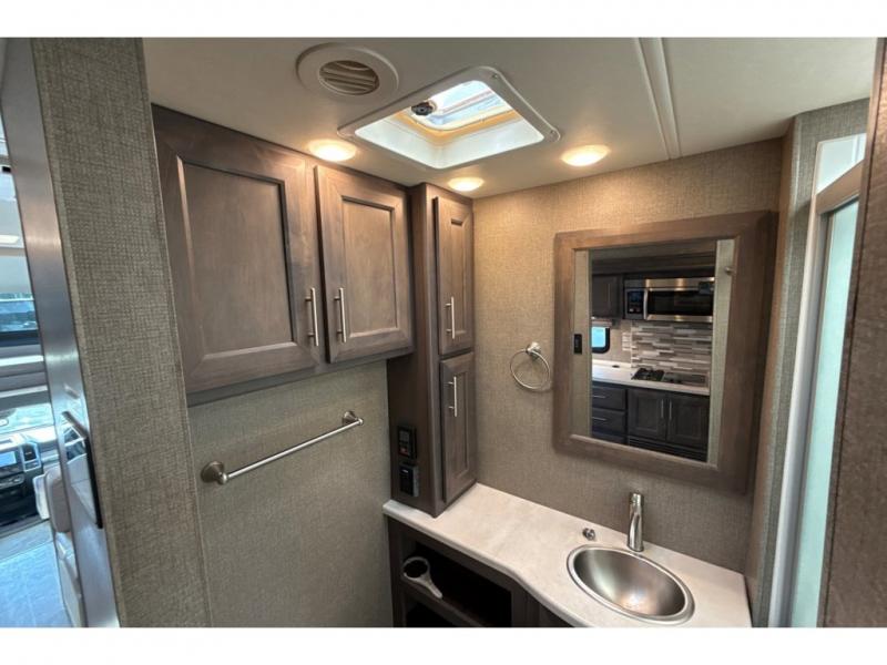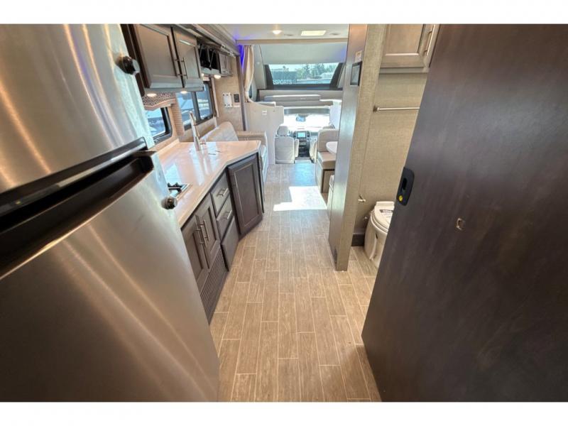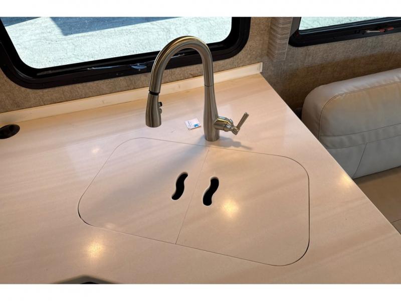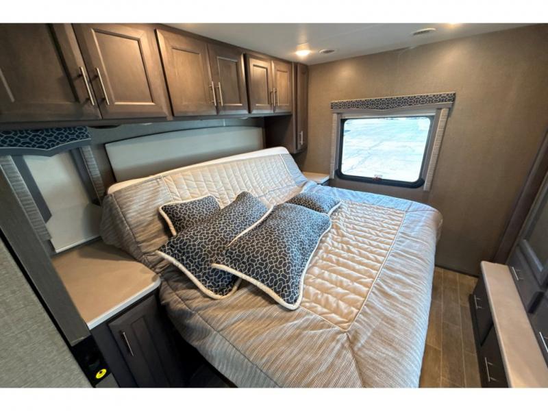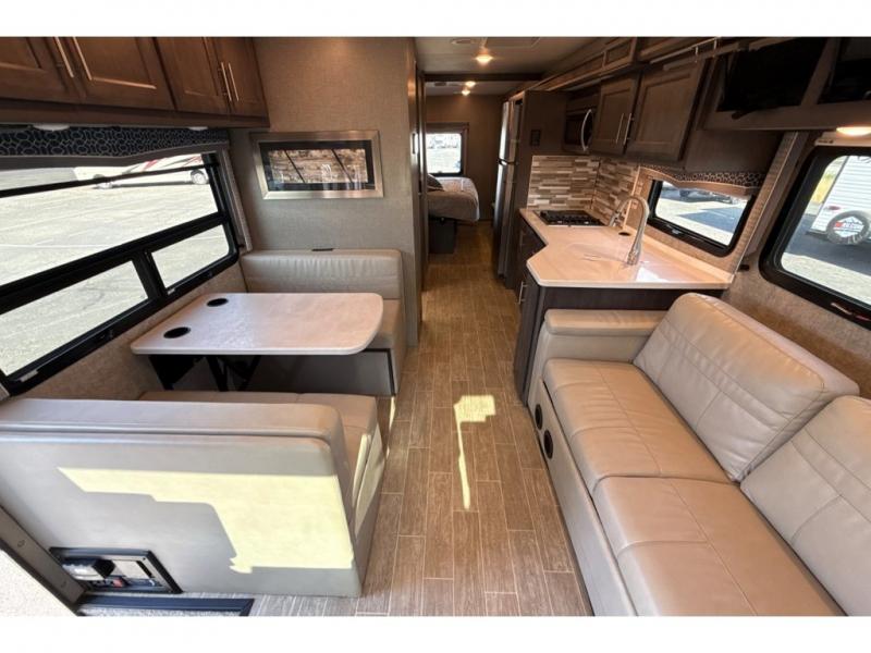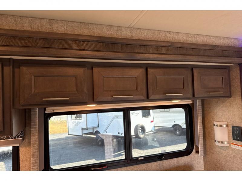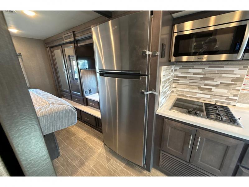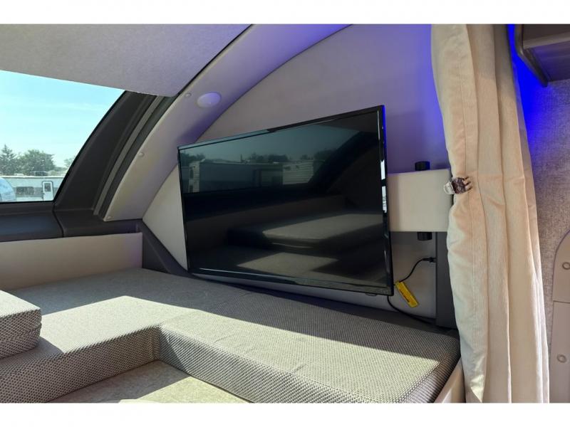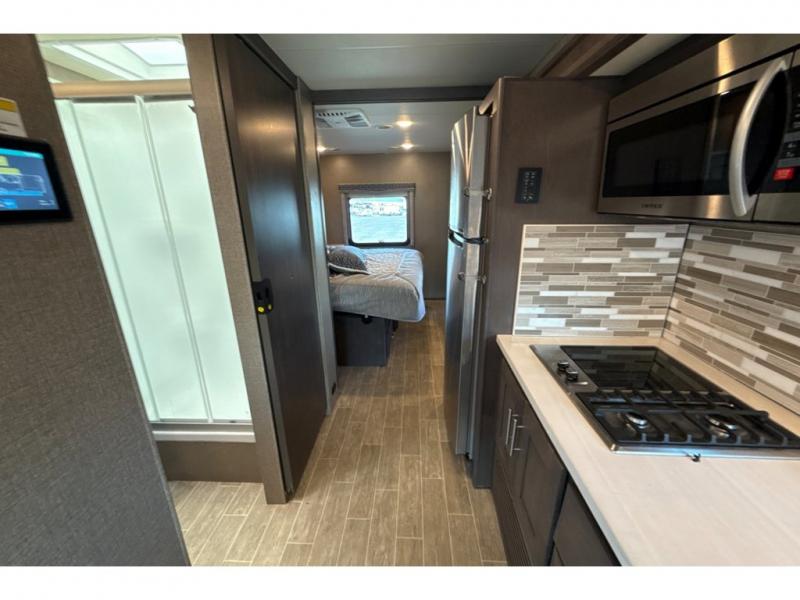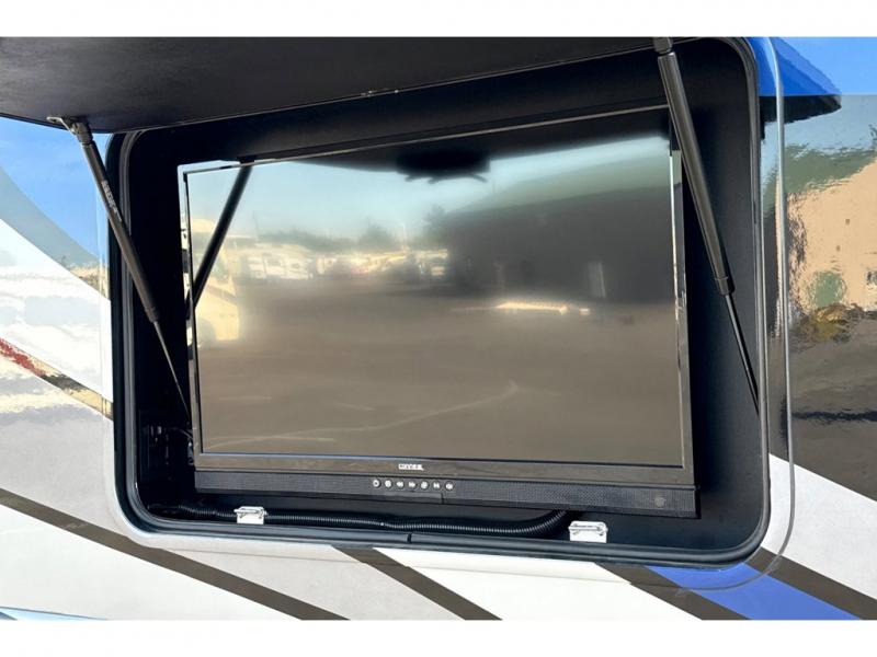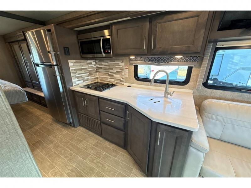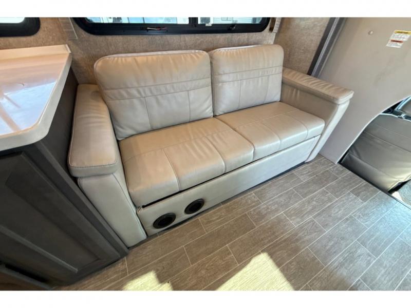 You will love every minute spent in this spacious motorhome. Once you arrive at your destination, relax on the 68" sofa bed while you watch a show on the 39" TV. There is also a Dream Dinette that will be perfect for a quick card game before you start dinner on the outdoor kitchen. If the weather isn't cooperating you'll find a two burner induction cooktop indoors, as well as a convection microwave. The rear private bedroom includes a Tilt-A-View inclining king bed so you can easily stay up and finish your book, and there is a 32" bedroom TV if you just want to cozy up with movie. This model also includes plenty of storage space, including a large bedroom wardrobe and exterior roto-cast storage compartments for camp gear!