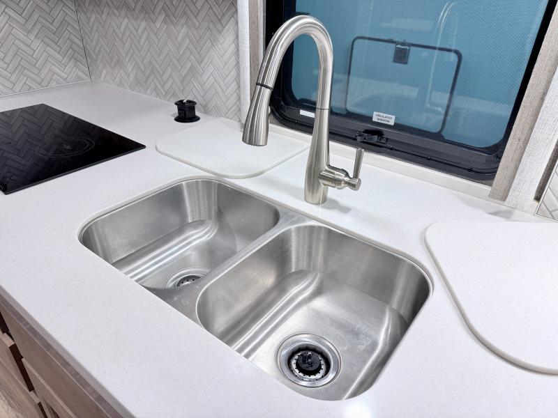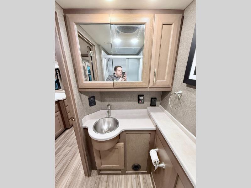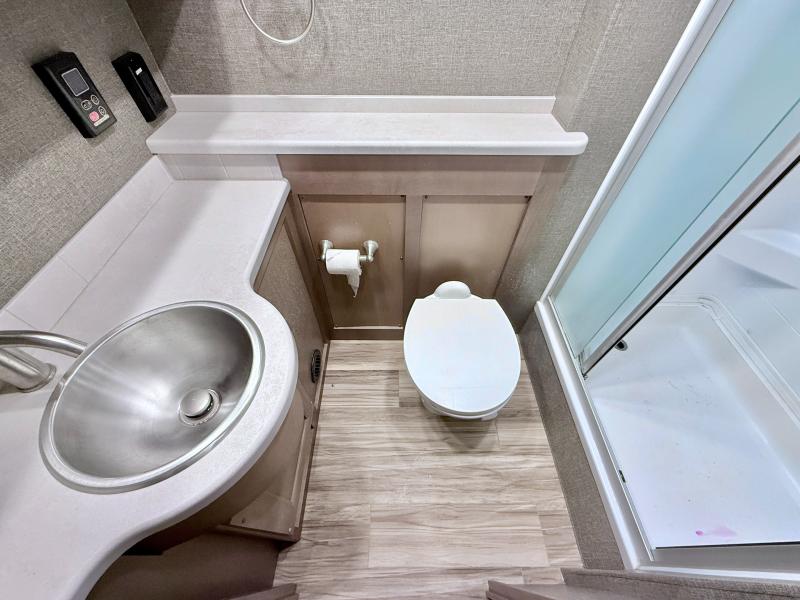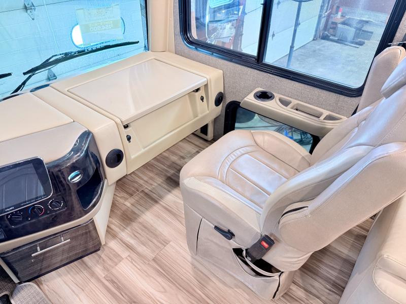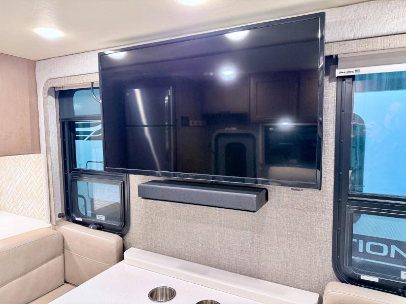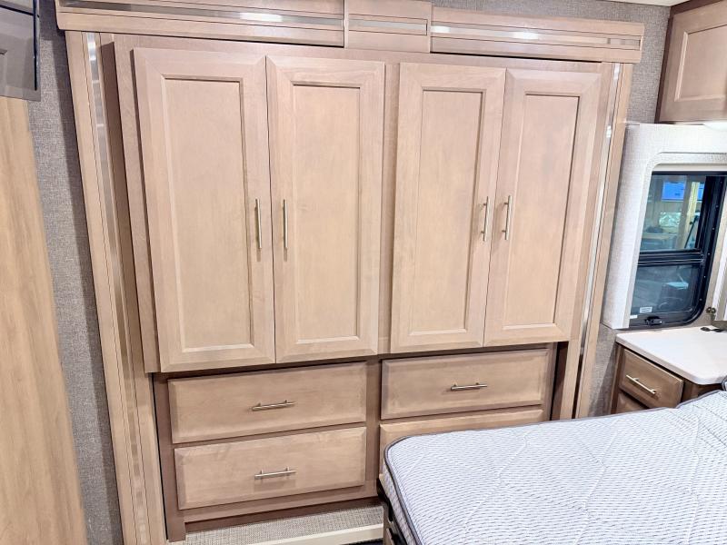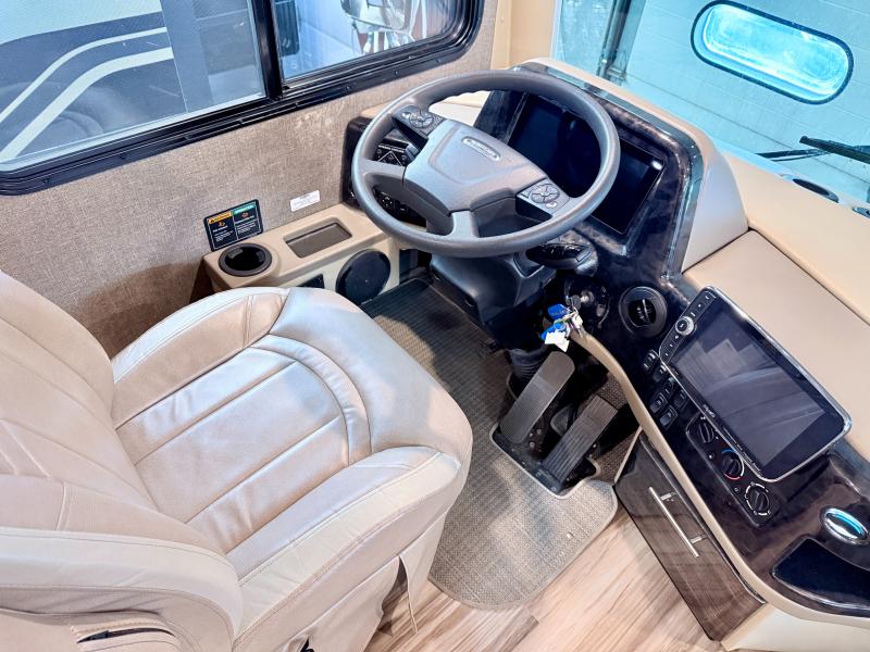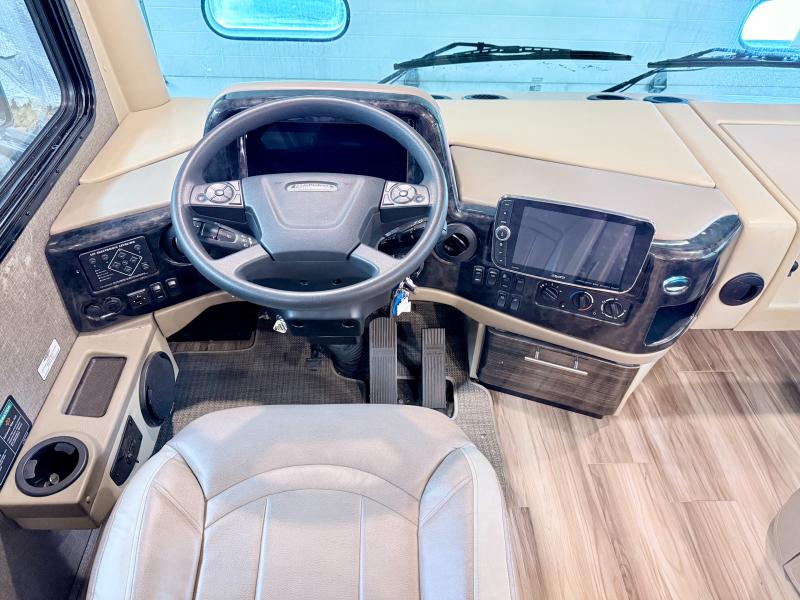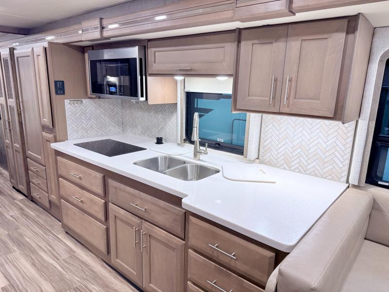 Make your trip across the country comfortable in this Class A diesel motorhome. Once you park, the swivel captain's seats can become a part of the living area, plus there are 68" inclining theater seats across from the 40" LED TV for your comfort. Once lunch is prepared on the electric induction cooktop, you can dine together at the Dream Dinette. You'll be pleased to find a residential refrigerator in the kitchen, along with a pantry and a large double bowl stainless steel sink. The full bath includes everything you need to stay fresh each day, and the rear bedroom will feel just like home. Here, you'll enjoy a Tilt-A-View inclining queen bed, a slide out wardrobe, plus a second wardrobe, and a 32" TV. If you love spending time outdoors, then this model has you covered with an 18' power awning with LED lights and an exterior 39" TV!