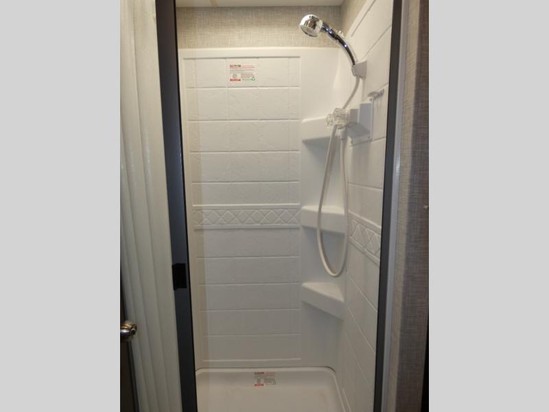It won't take long to feel right at home in this cozy motorhome. Once you arrive at your destination, you can swivel your captain's seats around to the living area, and enjoy a cold drink with the removable cockpit table. There is also theater seating with footrests and a 39" TV in perfect view so you can watch your favorite movies. The chef of your group can prepare lunch on the two burner gas cooktop, while someone else is preparing a fresh salad on the flip-up countertop. This model includes a booth dinette to dine at each day, or you can take your plate outdoors to sit under the 14' power awning. The private toilet and sink with the shower across the hall allow two people to fresh up at once, and this model includes a rear bedroom you are sure to love. Here, you can rest soundly on the full-size bed, watch a late-night movie on 32" bedroom TV, and store your clothes in the large closet!