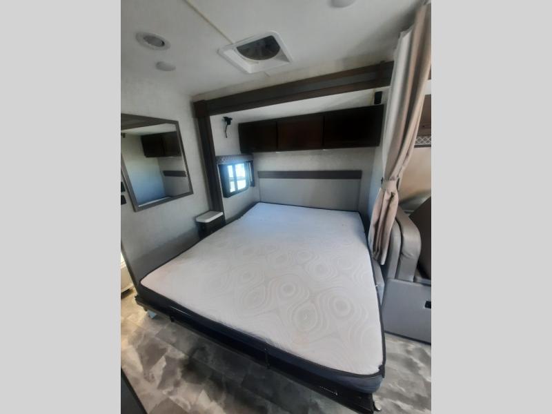 Go on vacation knowing that you have all that you need at your fingertips. You can go on tons of new adventures no matter the time of year. The murphy bed, and booth dinette give you your sleeping space. The rear bathroom gives you space and privacy, and the cab over is that last bit of sleeping space you need for your extra guest or storage. There is even an on-board generator. Why wait to take a vacation? Stop in, take a look and start your journey now.