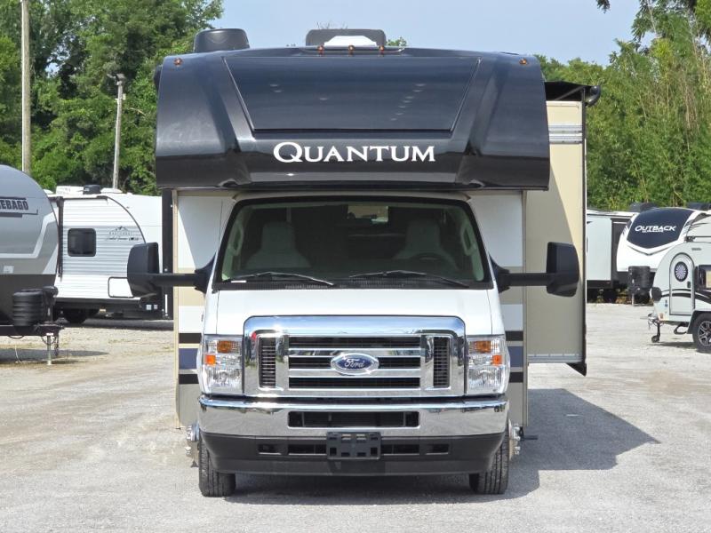 With any Quantum Class C gas motorhome, the construction includes a welded tubular steel floor, a welded tubular aluminum roof and sidewall cage construction, premium one-piece exterior roofing, plus frameless slider windows. The interior offers decorative glass inserts in the kitchen overhead cabinet doors and kitchen accent countertop lights for the style, full extension metal ball-bearing drawer guides, plus a 7-inch touchscreen dash radio with Google Android Auto-Apple CarPlay with a back-up monitor the driver will appreciate. The Diamond package is included and provides black frameless windows, a 30-inch over-the-range convection microwave oven, and SmoothTECH ride suspension by Mor-Ryde. No more dreaming, you can choose your favorite Quantum and start your RVing lifestyle!