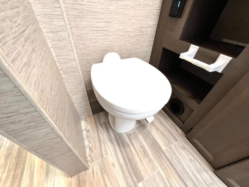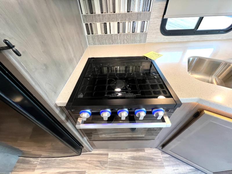 With any Resonate Class A gas motorhome by Thor Motor Coach you will find solid construction materials, including a one-piece fiberglass front cap, a welded tubular steel floor, and block foam insulation to enjoy camping all year long. The Ford F-53 chassis is ultra durable for many trips across the country, and the automatic leveling jacks with touchpad controls make setting up camp easier than ever. You will also love the rotocast storage compartments for all your gear, plus an HD-MAX exterior and framed windows for a more sleek look. The interior of each Resonate coach is warm and inviting with its residential vinyl flooring, flat panel cabinetry, and 7' interior ceiling height, and there are solid surface countertops the chef of your group is sure to love. An Onan RV QG 4000 gas generator also comes standard, along with dual roof A/C's, a Showermiser hot water recycling system, and a Winegard ConnecT WiFi extender + 4G to keep you connected to the outside world as you travel.