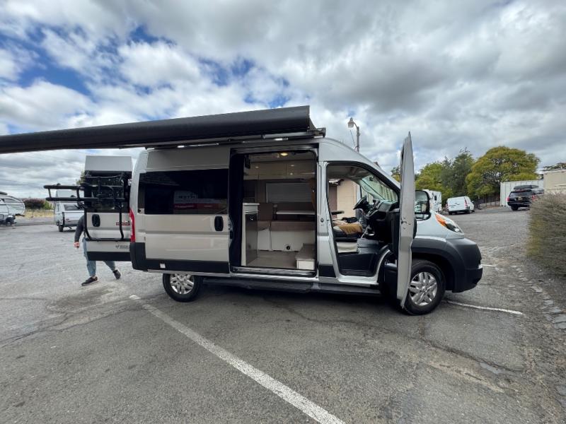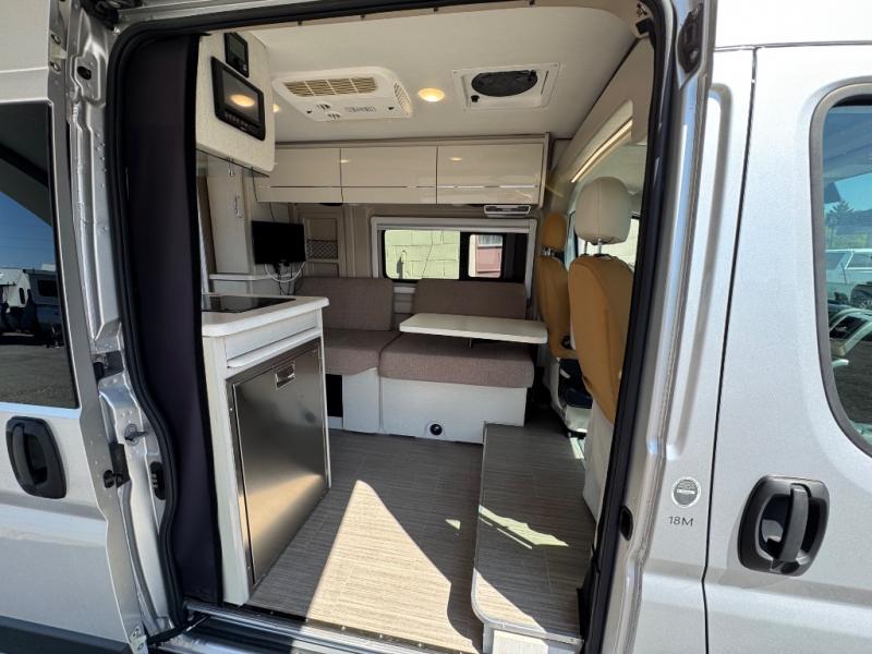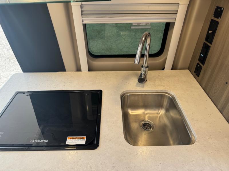 This coach is the perfect home on wheels for all your adventures. You will have everything you need, including a wet bath with a cassette toilet and pocket doors to save space. The Winegard ConnecT 2.0 4G/Wi-Fi/Digital TV antenna allows you to stay connected to the outside world. Once you have prepared breakfast on the two-burner gas cooktop, you can dine on the sofa with a removable table. This area can then be your sleeping space at night since the sofa converts into a pull-out bed. Whether you're enjoying the fresh air let in by the large opening side windows, or you're sipping on a cold drink under the electric awning, you will love everything about this coach!