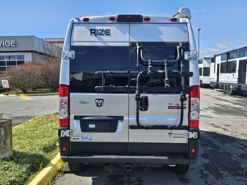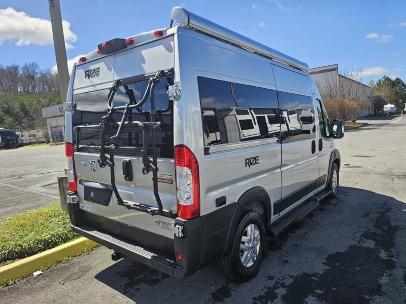 The Rize Class B gas motorhome by Thor Motor Coach allows you to experience the camping lifestyle in a compact RV packed with convenient features. There is a 3.6L Pentastar V6 engine and 280HP to power your excursions, and the outdoor enthusiast will love the 190W solar panel and solar charge controller. Each model includes residential vinyl flooring, TechnoForm Euro-style upper cabinet doors, and premium window privacy shades. You'll find pressed countertops in the kitchen and a glass protective cover and task lighting above the cooktop to easily cook meals each day. The keyless entry system adds to the convenience found throughout these models, plus there is an exterior LP connection if you want to hook up your own grill and a rear water sprayer to wash off your hiking boots.