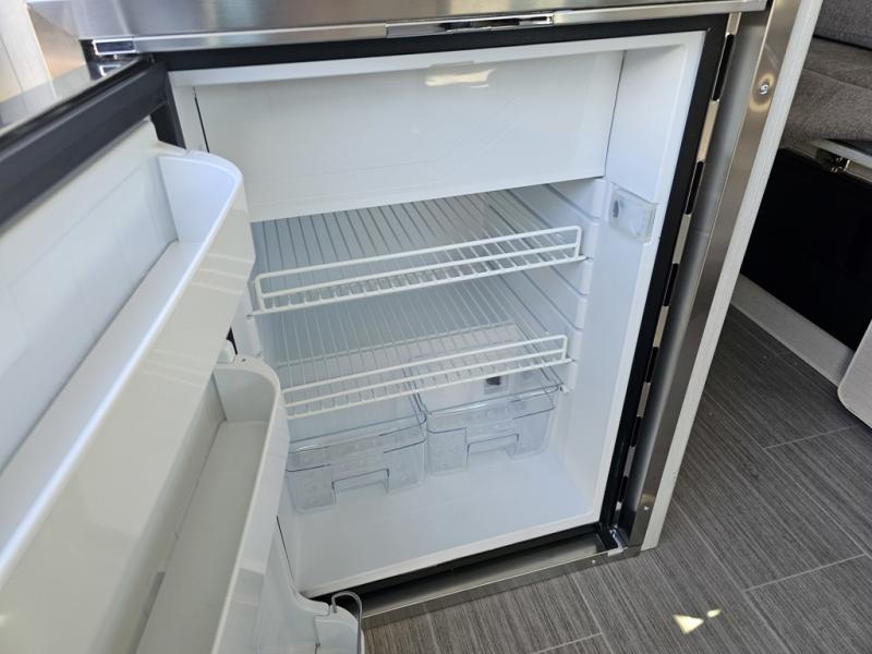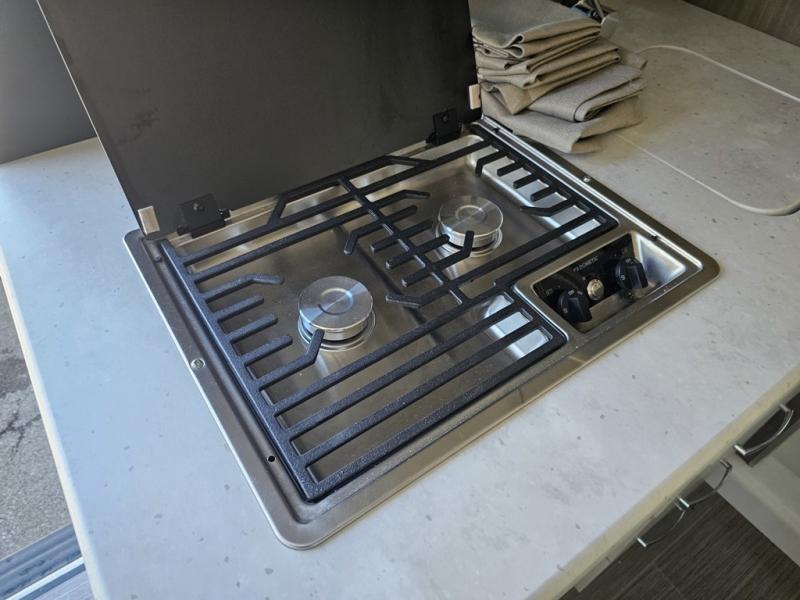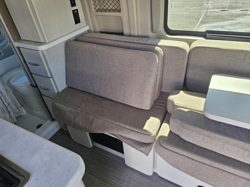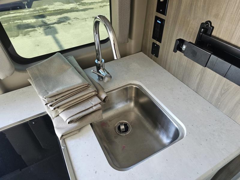 This coach is the perfect home on wheels for all your adventures. You will have everything you need, including a wet bath with a cassette toilet and pocket doors to save space. The Winegard ConnecT 2.0 4G/Wi-Fi/Digital TV antenna allows you to stay connected to the outside world. Once you have prepared breakfast on the two-burner gas cooktop, you can dine on the sofa with a removable table. This area can then be your sleeping space at night since the sofa converts into a pull-out bed. Whether you're enjoying the fresh air let in by the large opening side windows, or you're sipping on a cold drink under the electric awning, you will love everything about this coach!