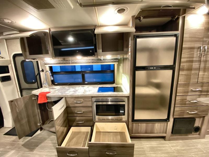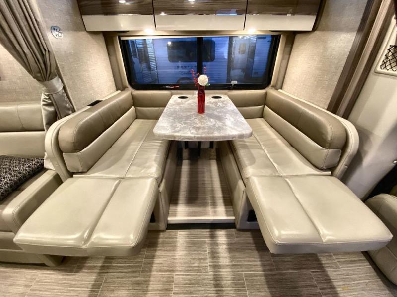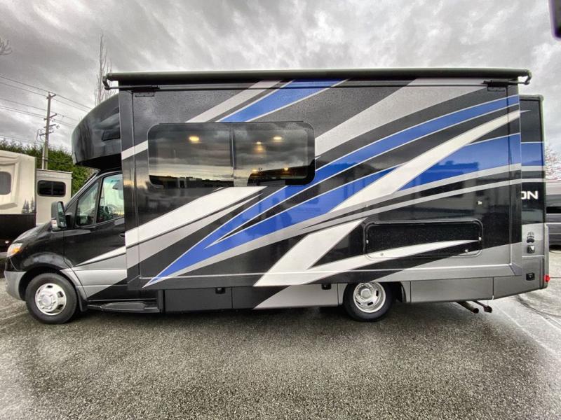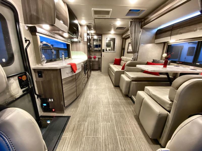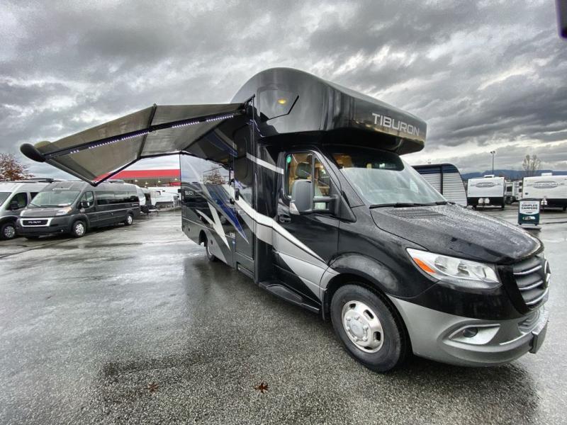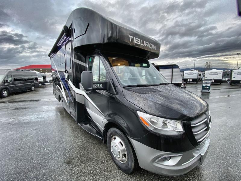 You will be well on your way to unforgettable journeys when you purchase the Thor Motor Coach Tiburon Sprinter Class C diesel motorhome and add it to your line-up! What makes the Tiburon Sprinter so special are the elegant and stunning interiors combined with the eye-catching exterior and powerful Mercedes-Benz Sprinter chassis with 3.0L V6 188HP engine. You will stay safe as you travel because the Mercedes-Benz safety package includes active braking assist, attention assist, active lane keeping assist, a wet wiper system, and a distance regulator distronic plus. As you tackle each adventure, you'll enjoy the cockpit features that allow you to enjoy traveling, like the Mercedes-Benz multimedia dash radio with Bluetooth®, navigation, and SiriusXM® and the rearview mirror with back-up system. And don't overlook the electrical and plumbing features! You will be impressed by the wireless phone charger, Winegard® ConnecT™ 2.0 Wi-Fi/4G/TV antenna, tankless water heater, and 100W solar charging system with power controller.