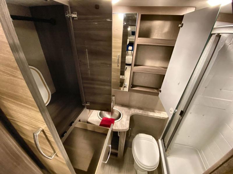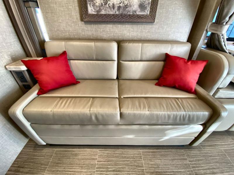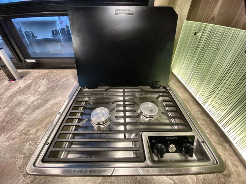 This Tiburon Sprinter Class C diesel motorhome has everything you need to vacation comfortably! During the day you will find a 67" sofa and 70" Dream Dinette with footrests to relax on, but once night falls, you can transition the sofa into a 60" x 74" Murphy bed which you can use to sleep soundly. When you wake up, it will be easy to head over to the kitchen to prepare something to eat. You can use the two-burner gas cooktop and the convection microwave oven to prepare a hot meal, or you can just grab some cereal from the pantry and some milk from the double-door refrigerator for a fast breakfast. The pop-up countertop outlet and charging center for electronics in the kitchen is a bonus feature that you'll definitely love to have.