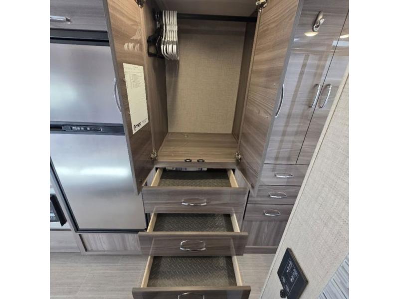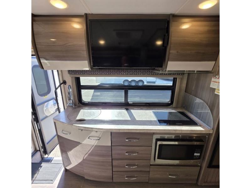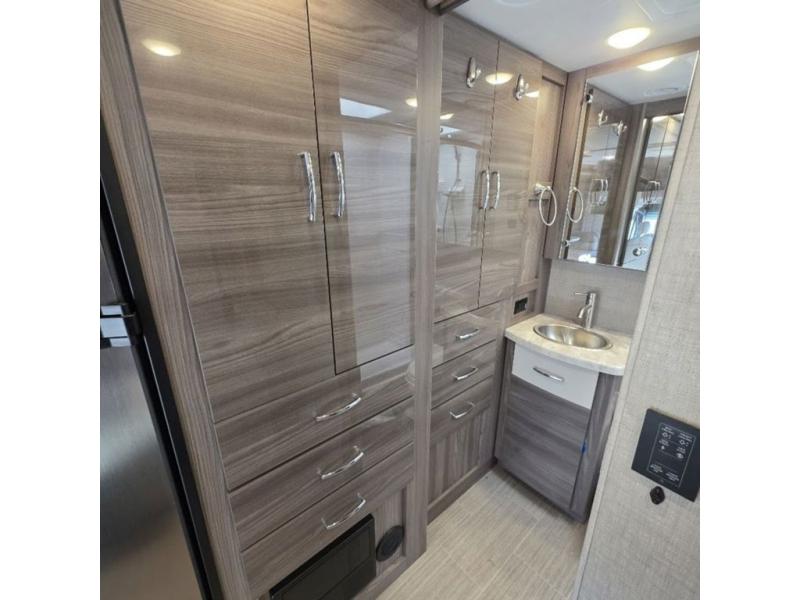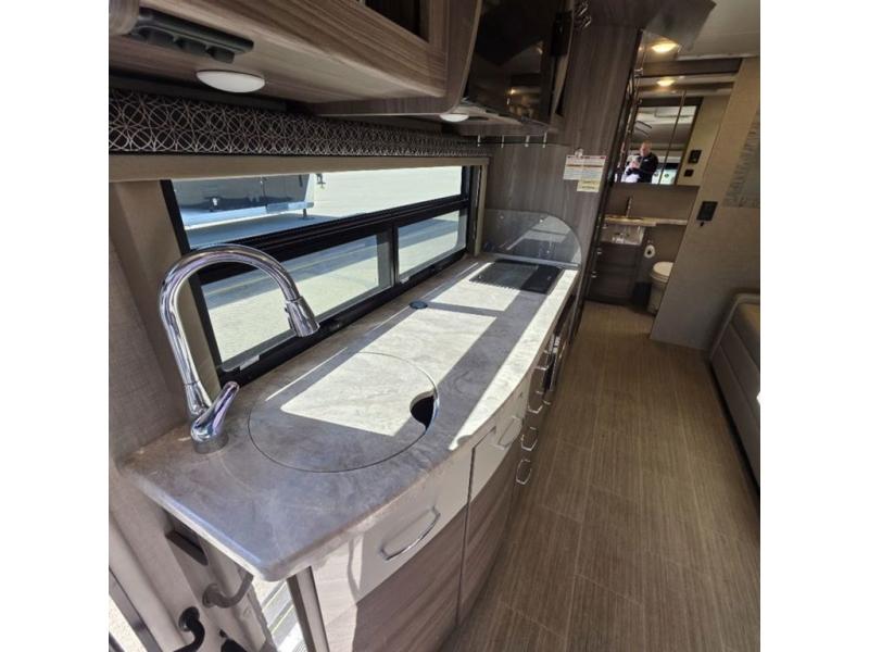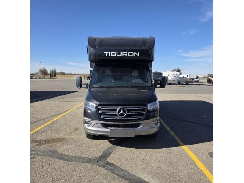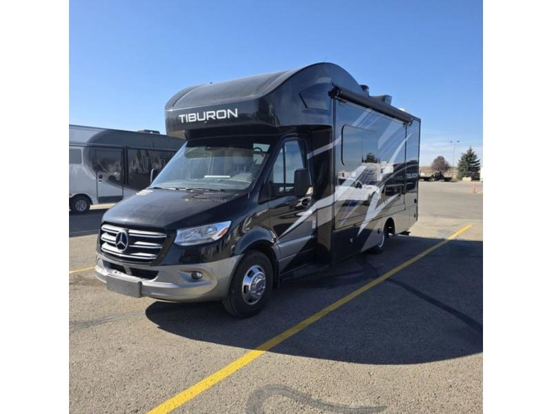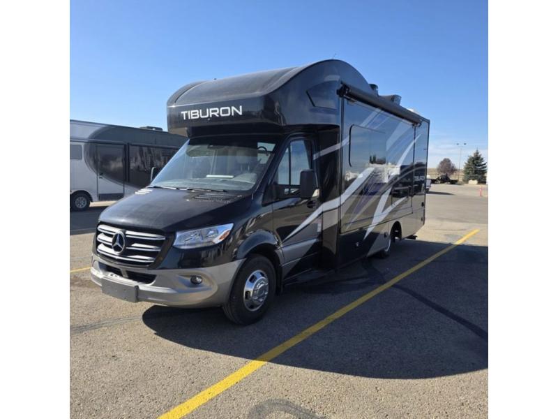 You will be well on your way to unforgettable journeys when you purchase the Thor Motor Coach Tiburon Sprinter Class C diesel motorhome and add it to your line-up! What makes the Tiburon Sprinter so special are the elegant and stunning interiors combined with the eye-catching exterior and powerful Mercedes-Benz Sprinter chassis with 3.0L V6 188HP engine. You will stay safe as you travel because the Mercedes-Benz safety package includes active braking assist, attention assist, active lane keeping assist, a wet wiper system, and a distance regulator distronic plus. As you tackle each adventure, you'll enjoy the cockpit features that allow you to enjoy traveling, like the Mercedes-Benz multimedia dash radio with Bluetooth®, navigation, and SiriusXM® and the rearview mirror with back-up system. And don't overlook the electrical and plumbing features! You will be impressed by the wireless phone charger, Winegard® ConnecT™ 2.0 Wi-Fi/4G/TV antenna, tankless water heater, and 100W solar charging system with power controller.
