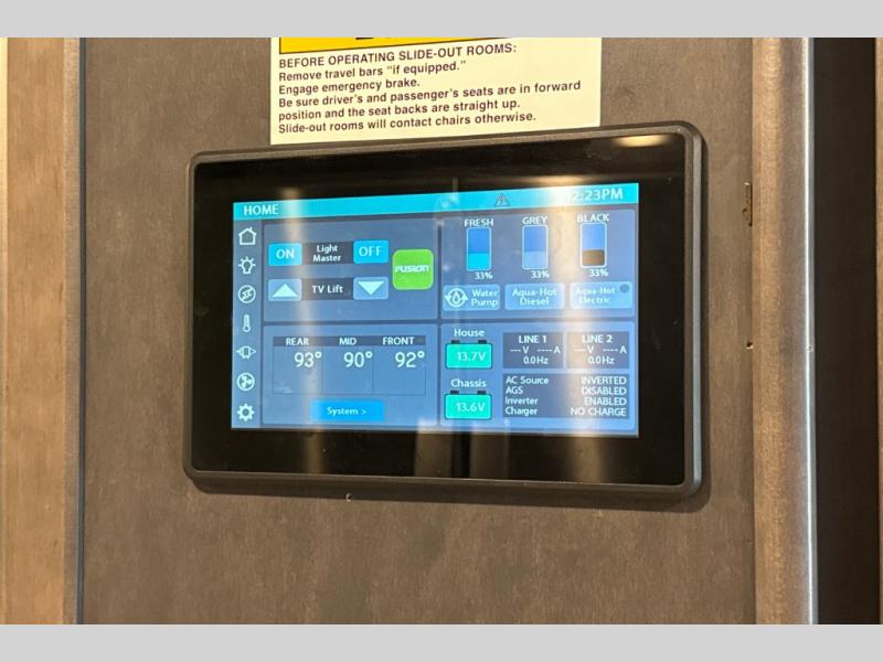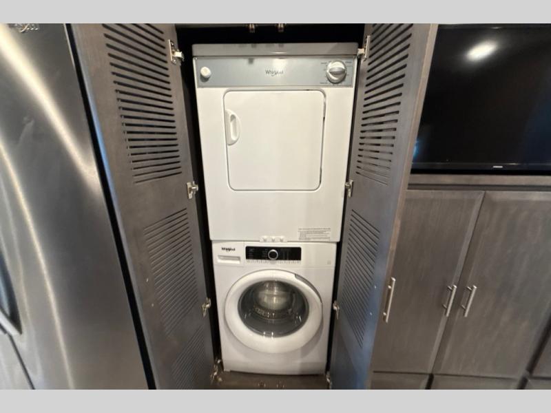 Live in the lap of luxury with the Thor Motor Coach Venetian Class A diesel motorhome! Each unit has amazing electrical and plumbing features with the three low-profile ducted roof air conditioners, the Aqua-Hot® 250D hydronic furnace and water heating system, and the RapidCamp+™ multiplex wiring control system with 7” screen, app-enabled, and SurgeGuard® electrical protection. There is also an Onan® RV QD 10,000 diesel generator on power slide, and a 100W solar charging system with a power controller. You will be so amazed to find a stackable washer/dryer on each model, and the central vacuum system with toe-kick dustpan will keep the floor free of messes. The entertainment features are also on point with the many LED HDTVs, the JBL® sound bar with Bluetooth® in the living area, the Sony® Blu-Ray players in the living area and bedroom, the Winegard™ TRAV'LER HD satellite dish, and the Winegard® ConnecT 2.0 Wi-Fi/4G/TV antenna.