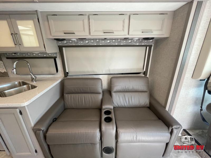 There are all sorts of adventures to be had with the Thor Motor Coach Windsport Class A gas motorhome! Built on a Ford F-53 chassis, the Windsport will gather lots of attention with its HD-MAX® exterior with graphics package. It also offers you a basement pass-through storage and a Pet-Link™ multi-purpose tie-down. The Bird's Eye™ window is so easy to see through in the cockpit, and there are reclining/swivel leatherette captain's chairs to relax in while you travel. The Winegard® ConnecT™ Wi-Fi extender +4G will allow you to post on your social media or send an email from the cockpit's dash work station, and the Rapid Camp+® multiplex wiring control system with Bluetooth and 7" touchscreen will allow you to control and monitor the various electrical systems on your coach.