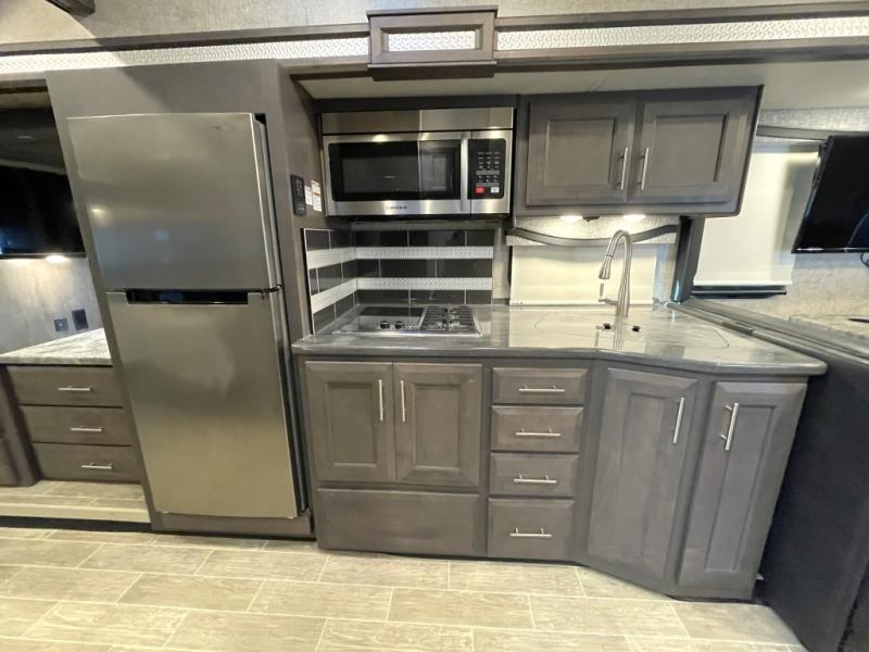 This versatile Class A coach transforms wherever you park it. Relax in the garage by day and convert it into a bedroom by night. Unwind on the patio deck with friends or chill indoors with your favorite show. With seating, sleeping, and entertainment for the whole crew, every trip becomes an event.