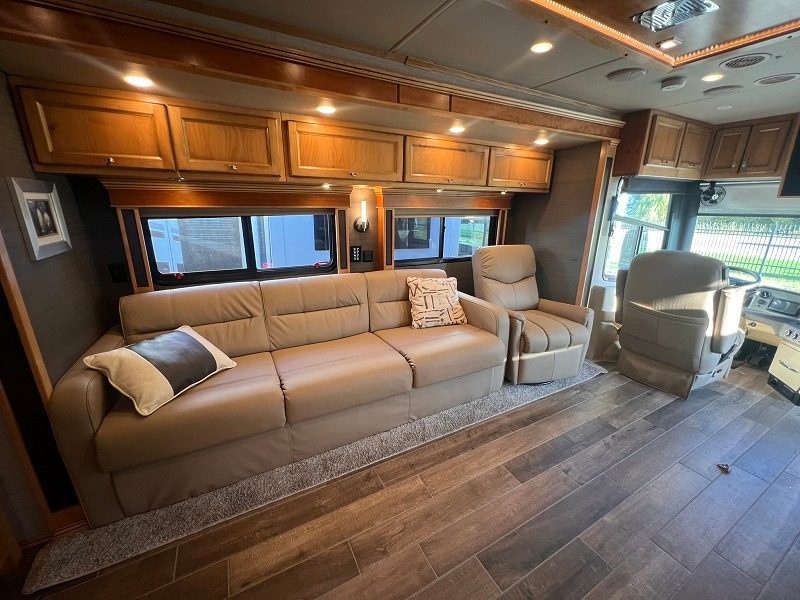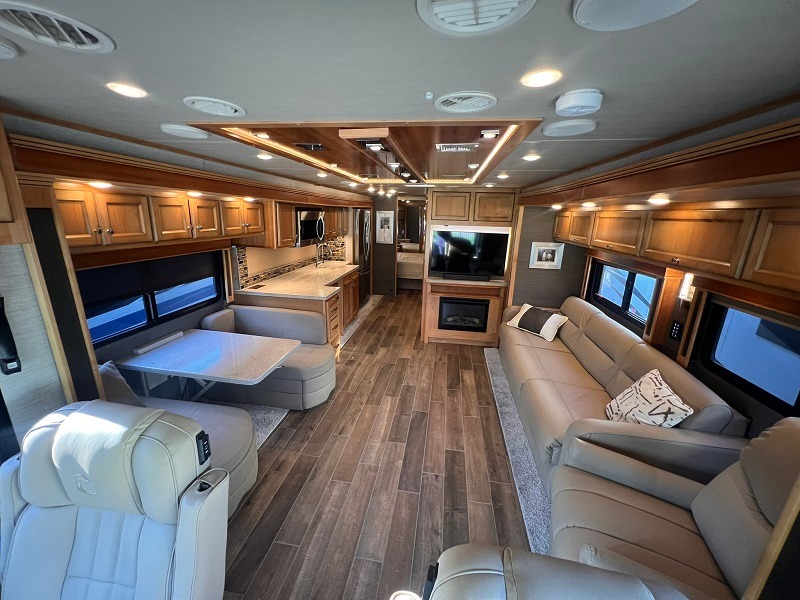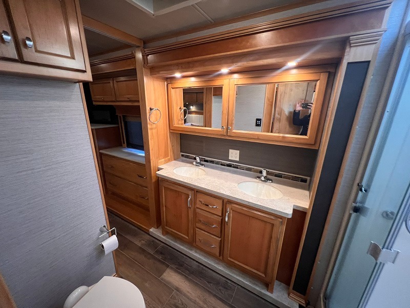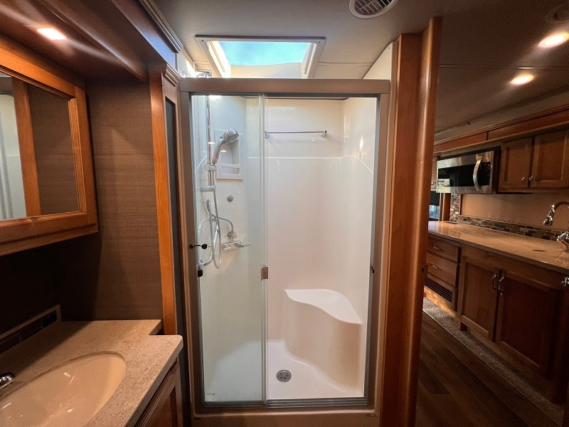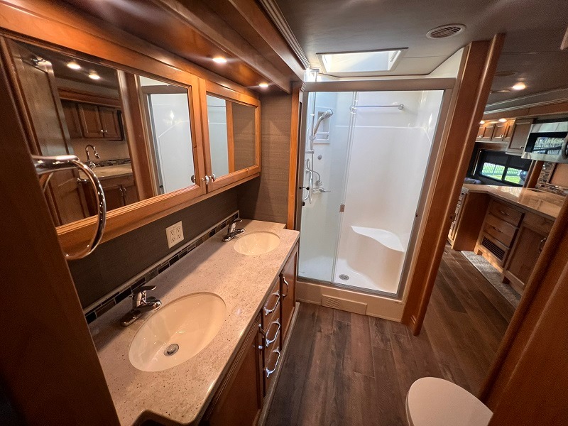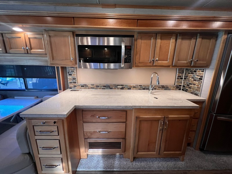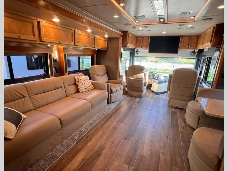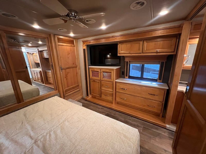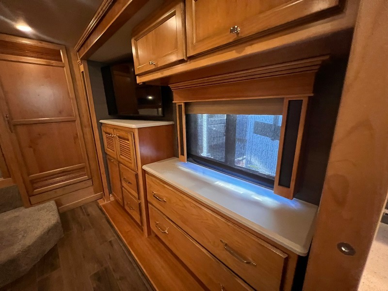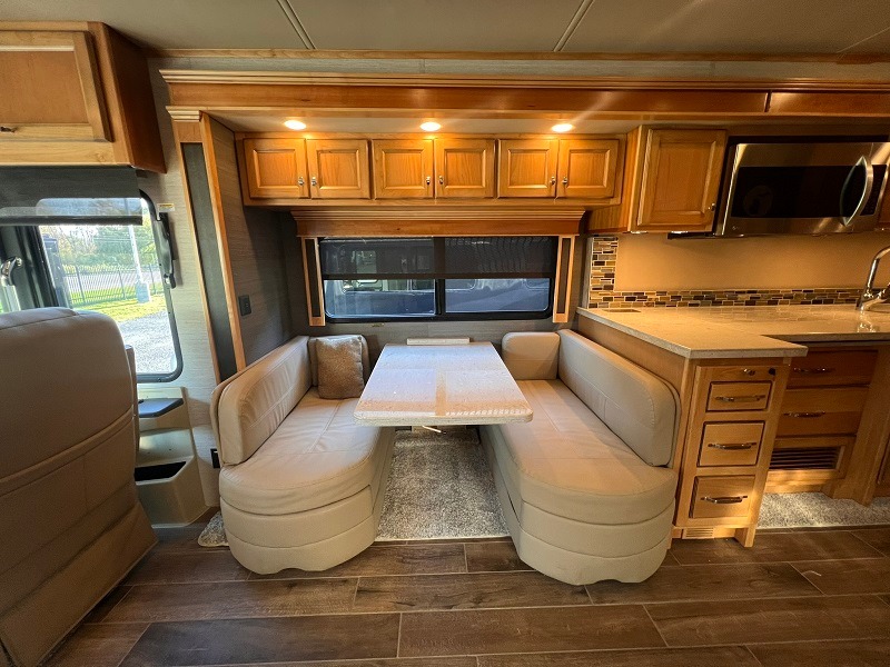 You have to see just how beautiful and upscale this Allegro RED Class A diesel motorhome is! This coach is stunning with its handcrafted cabinetry and stylish décor, and the 7' ceiling and four slides really open up the entire coach to make it feel spacious. This coach is decked out with four flat-panel TVs so that you can watch your favorite show from just about anywhere, and the dual-entry bathroom is extremely convenient with its dual-sink vanity. The second entry on the bathroom leads right into the bedroom so that you can have discreet access when you wake up in the morning, and the kitchen is certainly going to be a favorite feature with its residential refrigerator and convection microwave. Plus, the expand-an-island adds extra countertop space when you need to prep meals!