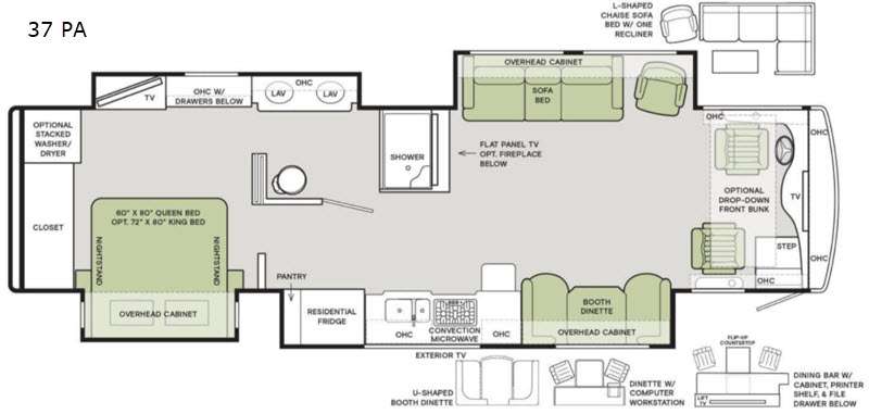 | TV Info | Cab Flat Panel TV, LR Flat Panel TV, BR Flat Panel TV, Ext. Flat Panel TV |